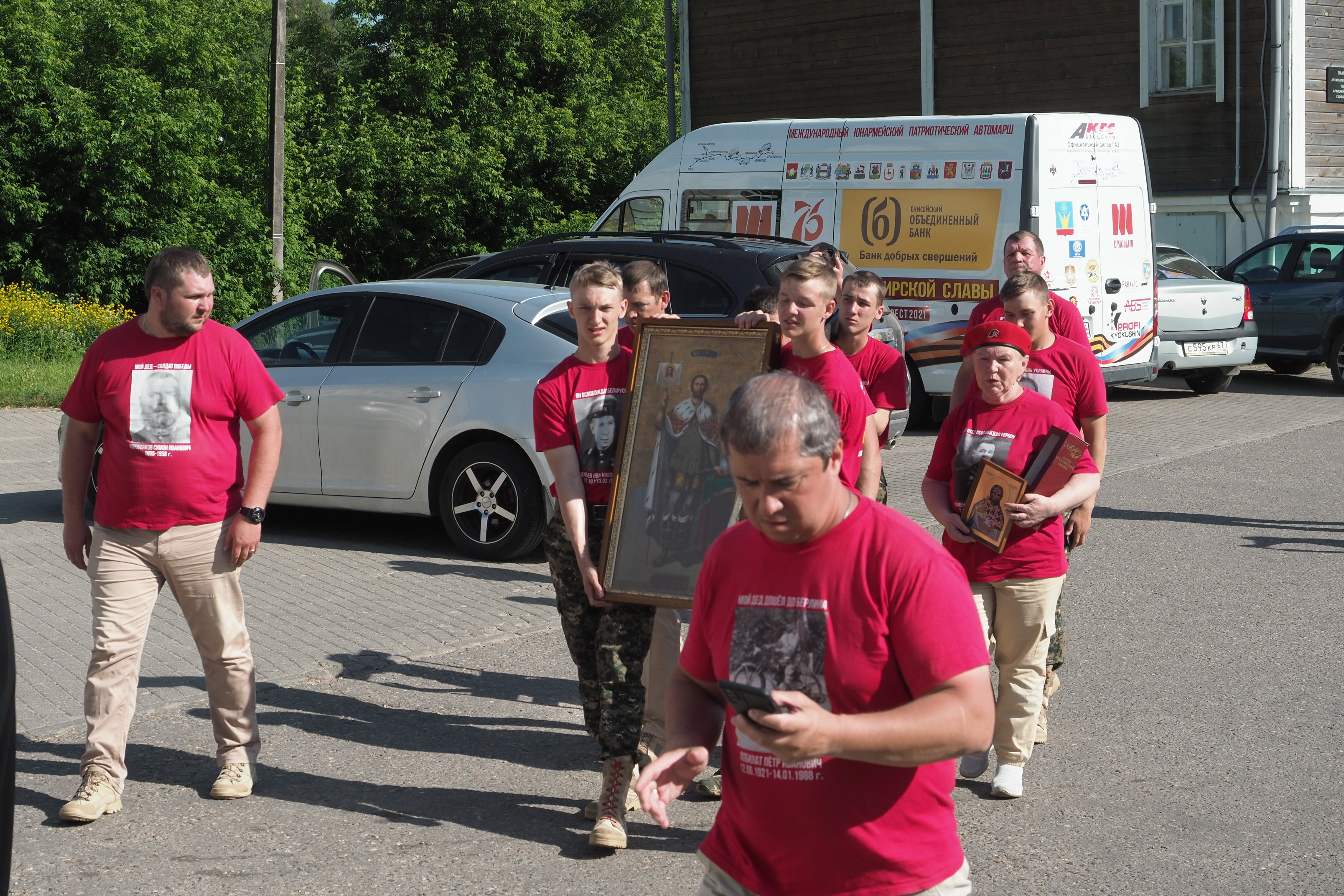 Руководители автопробега — советник Губернатора Красноярского края, начальник регионального штаба всероссийского детско-юношеского военно-патриотического общественного движения «Юнармия» Красноярского края — Денис Петрович Побилат и руководитель поискового отряда «Память» Лидия Артемовна Коршунова поблагодарили митрополита Исидора за вознесенную молитву и вручили ему на память икону красноярского новомученика — священномученика Димитрия Апанского и подарочный сувенир-бюст благоверного князя Александра Невского.