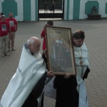 «Сегодня в молитве мы попросили перед образом иконы Божией Матери «Одигитрия» и перед иконой святого благоверного князя Александра Невского благословения к тому, чтобы совершаемый вами автомобильный Крестный ход был благополучно завершен. Это тоже Промысел Божий: в год, когда вся наша Церковь и все Отечество отмечают 800-летие со дня рождения благоверного князя Александра Невского, совершается множество мероприятий и Крестных ходов, вы тоже вносите свою лепту в это богоугодное дело. Слава Богу! Посещение вами города-Героя Смоленска, который стоит на пути между Красноярском и Брестом, является для нас в том числе утешением «.