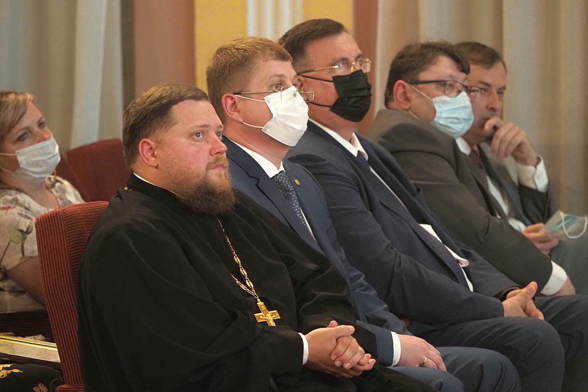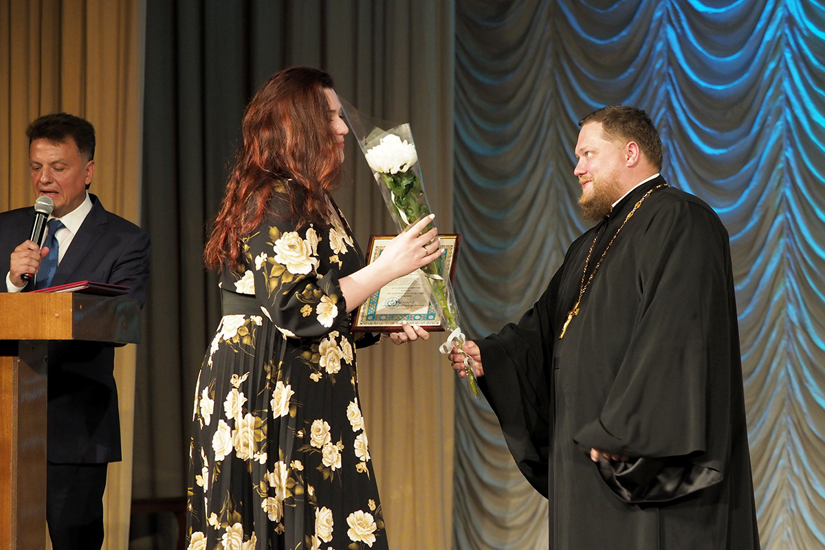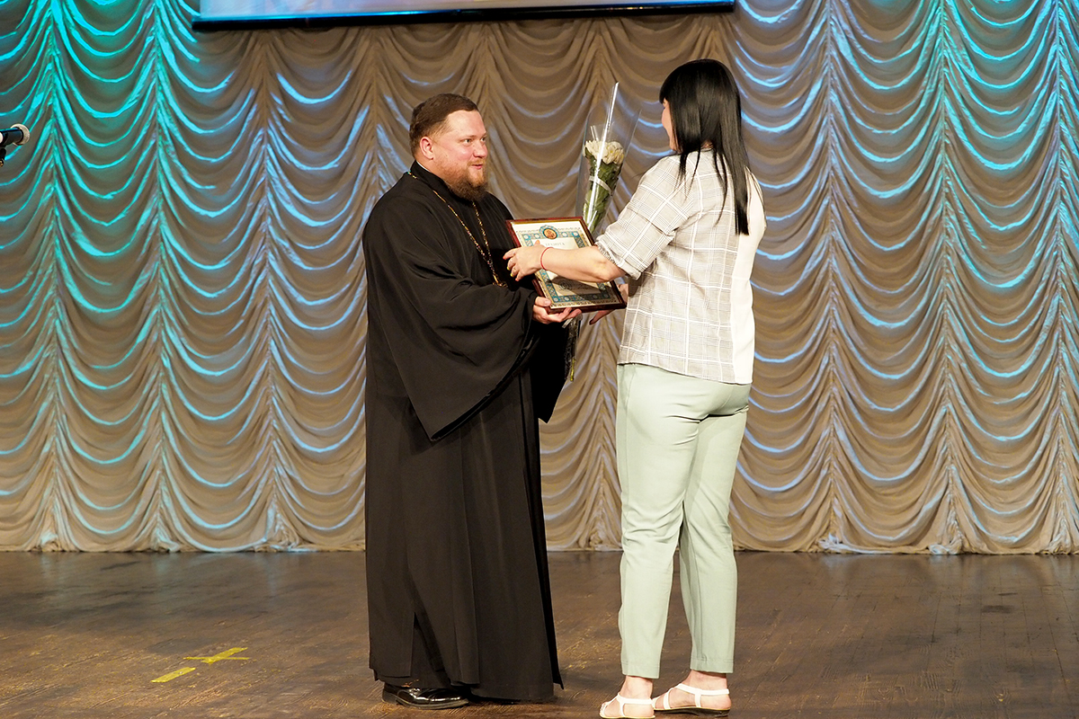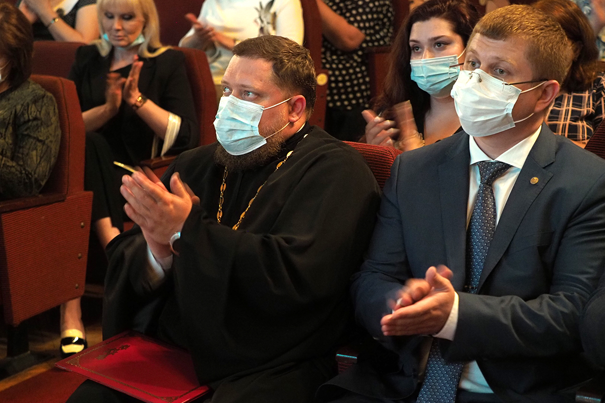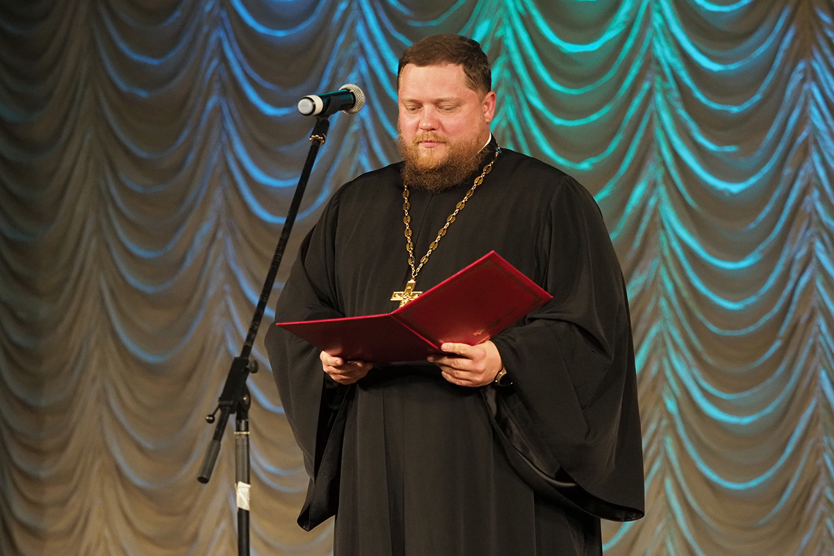 От имени митрополита Смоленского и Дорогобужского Исидора медицинских работников поздравил руководитель Отдела Смоленской епархии по социальному служению и церковной благотворительности, благочинный Петропавловского церковного округа иерей Дионисий Давыдов. Иерей Дионисий выразил благодарность врачам, медицинским сестрам и вручил ряд епархиальных наград за усердные труды в деле милосердного служения ближним.