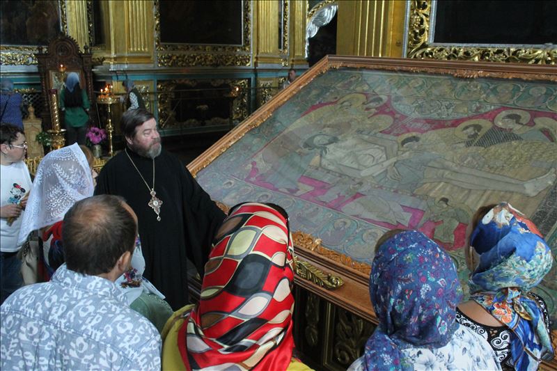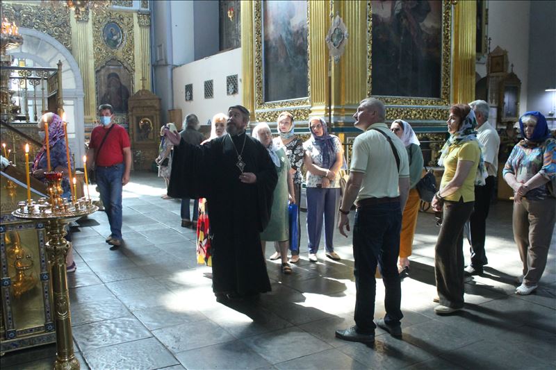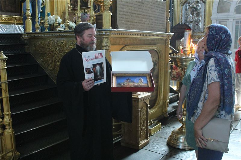Экскурсию по главному храму Смоленска провёл член Правления Смоленского отделения Международного общественного фонда «Российский фонд мира», клирик Свято-Успенского кафедрального собора г. Смоленска протоиерей Михаил Горовой.