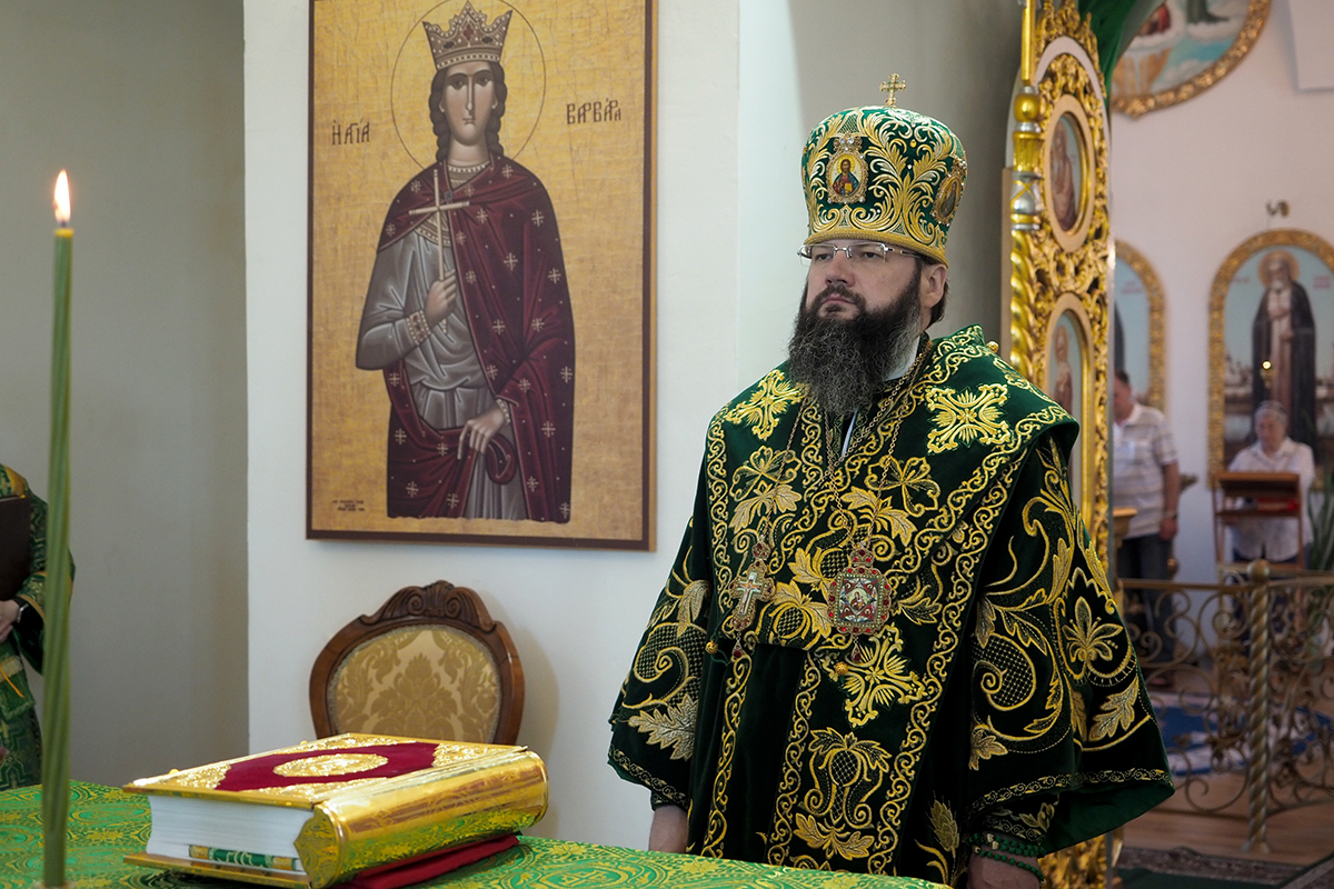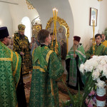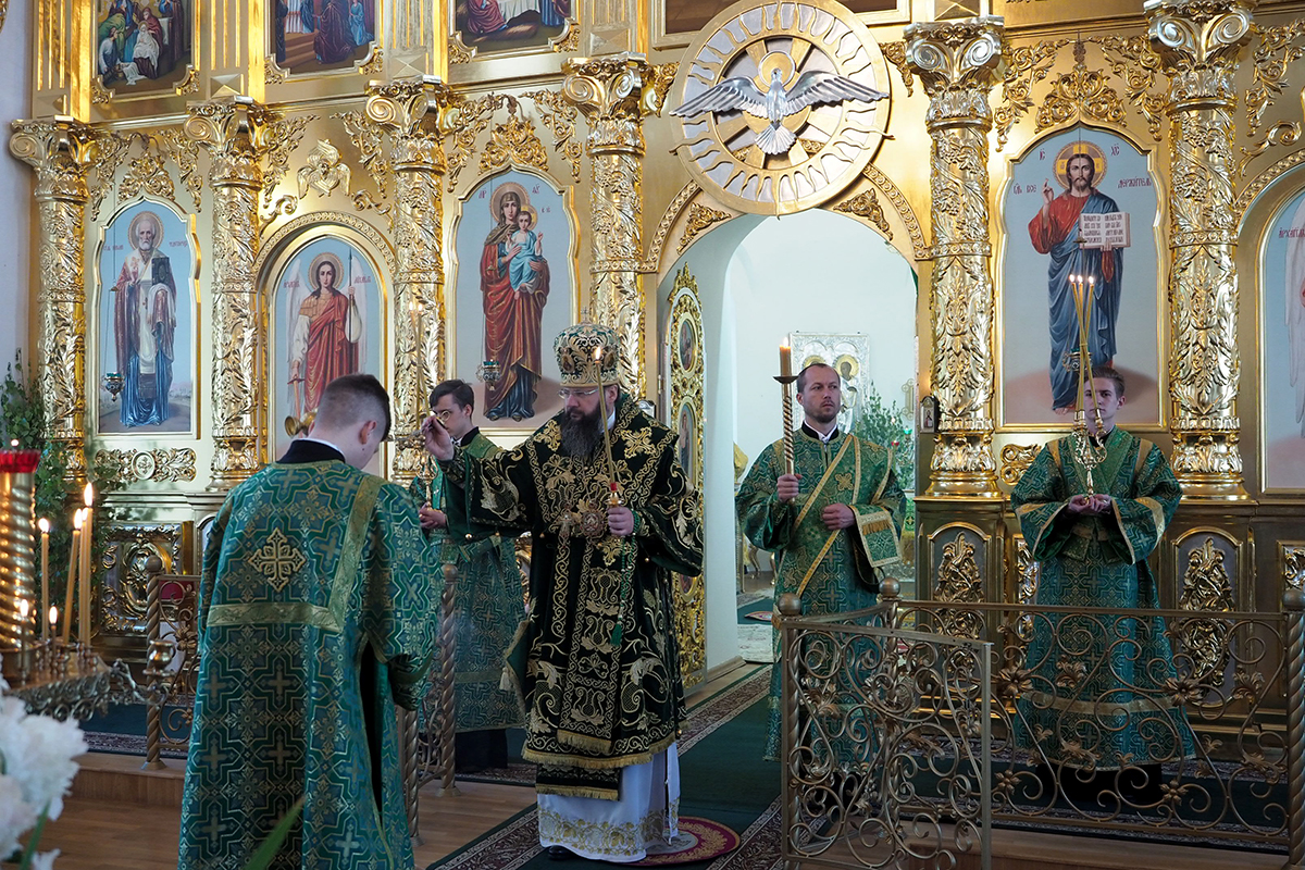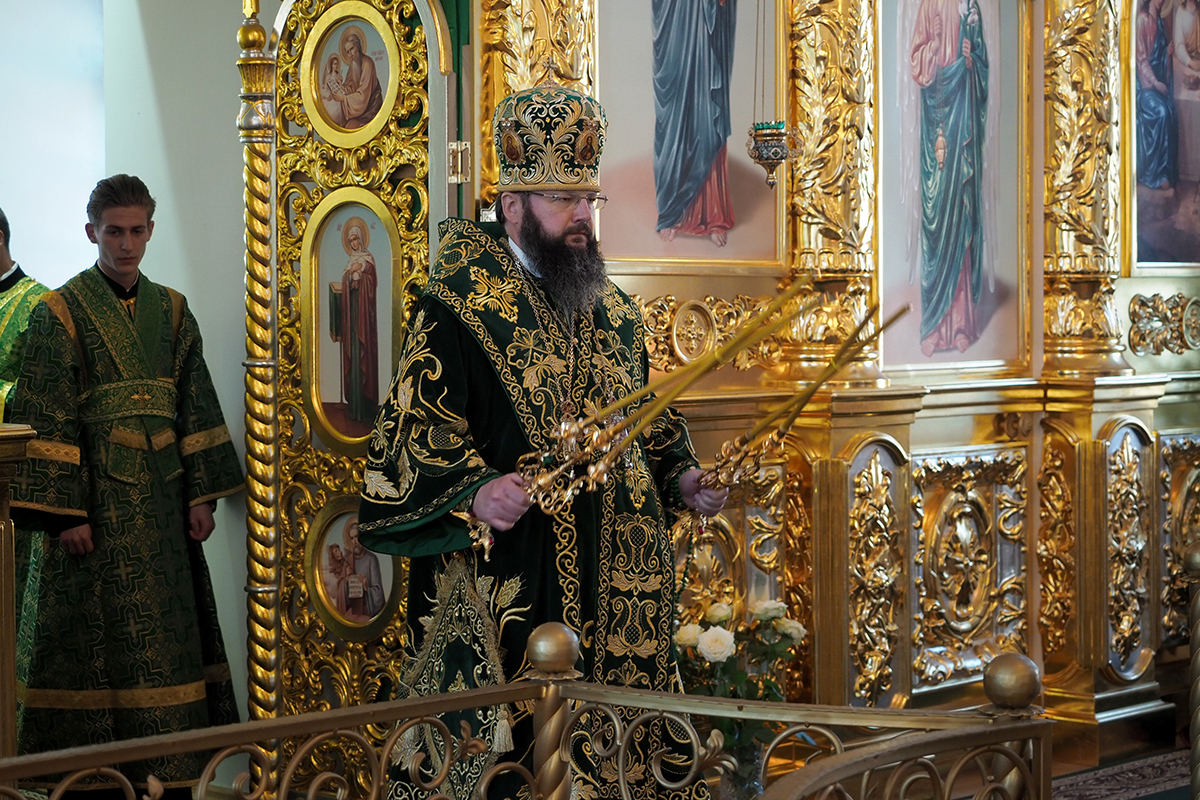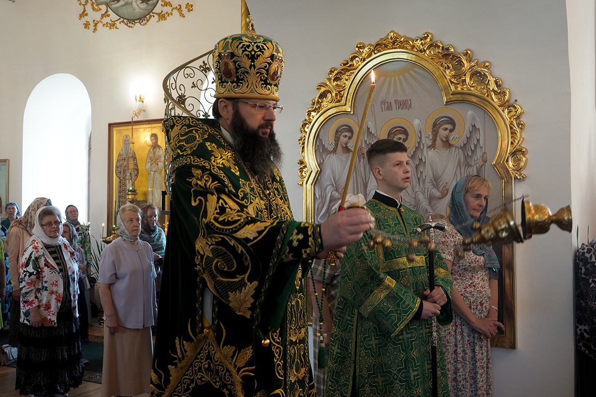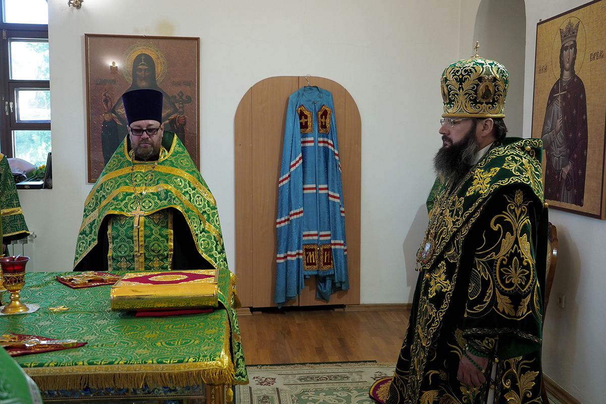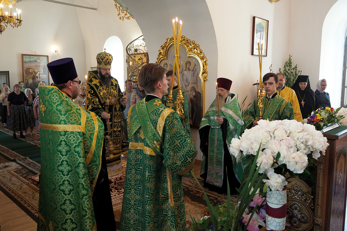 Его Высокопреосвященству сослужили клирики Свято-Троицкого женского монастыря иерей Олег Ефимов и иерей Алексий Сологубов; клирики Свято-Успенского кафедрального собора. За богослужением молились настоятельница монастыря игумения Николая (Саттерова) с сестрами обители.