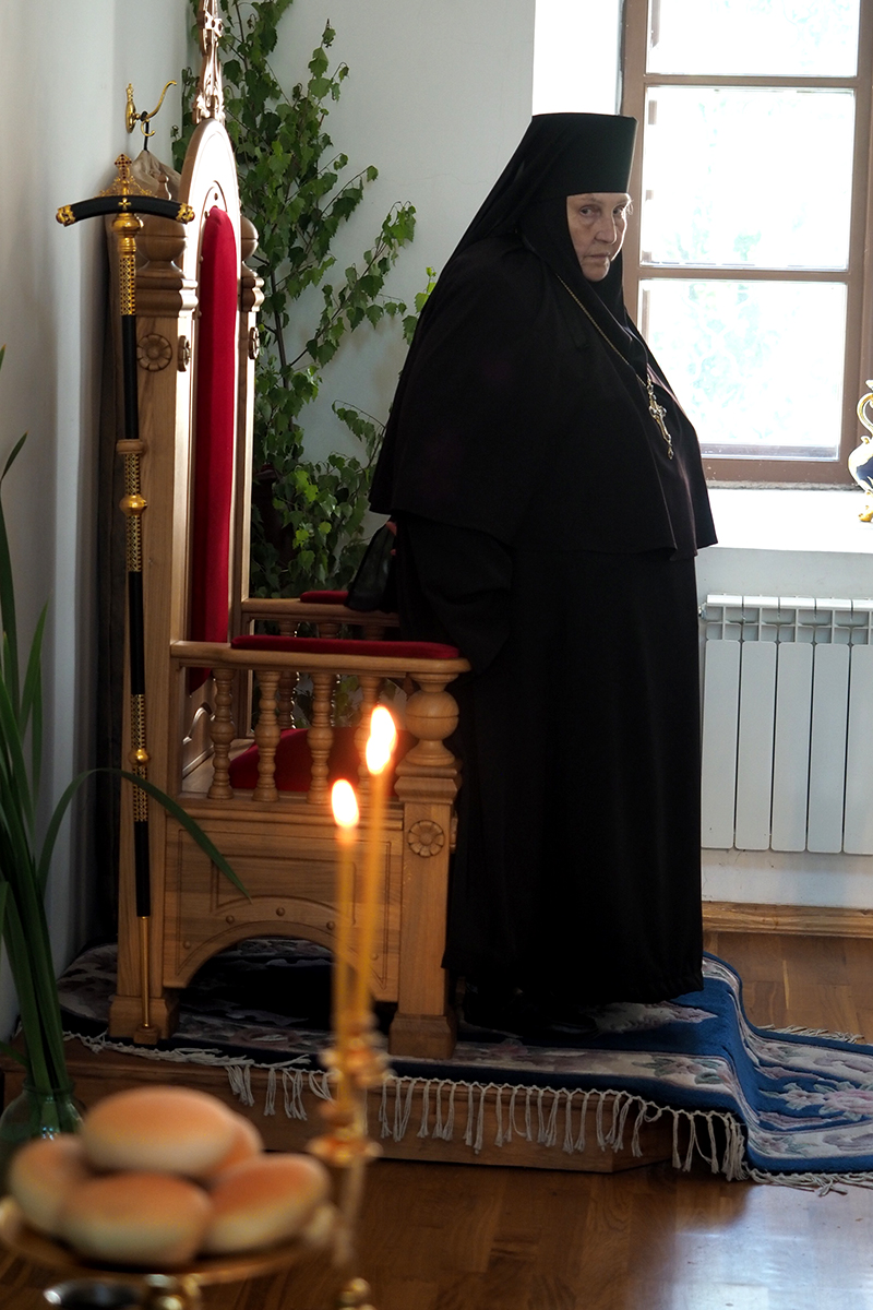 Игумения Николая (Саттерова) преподнесла владыке Исидору подарок.