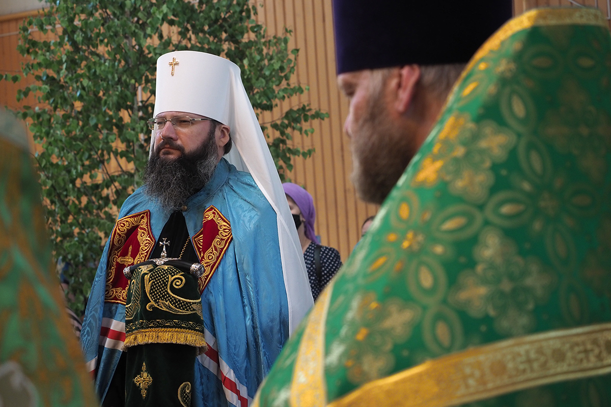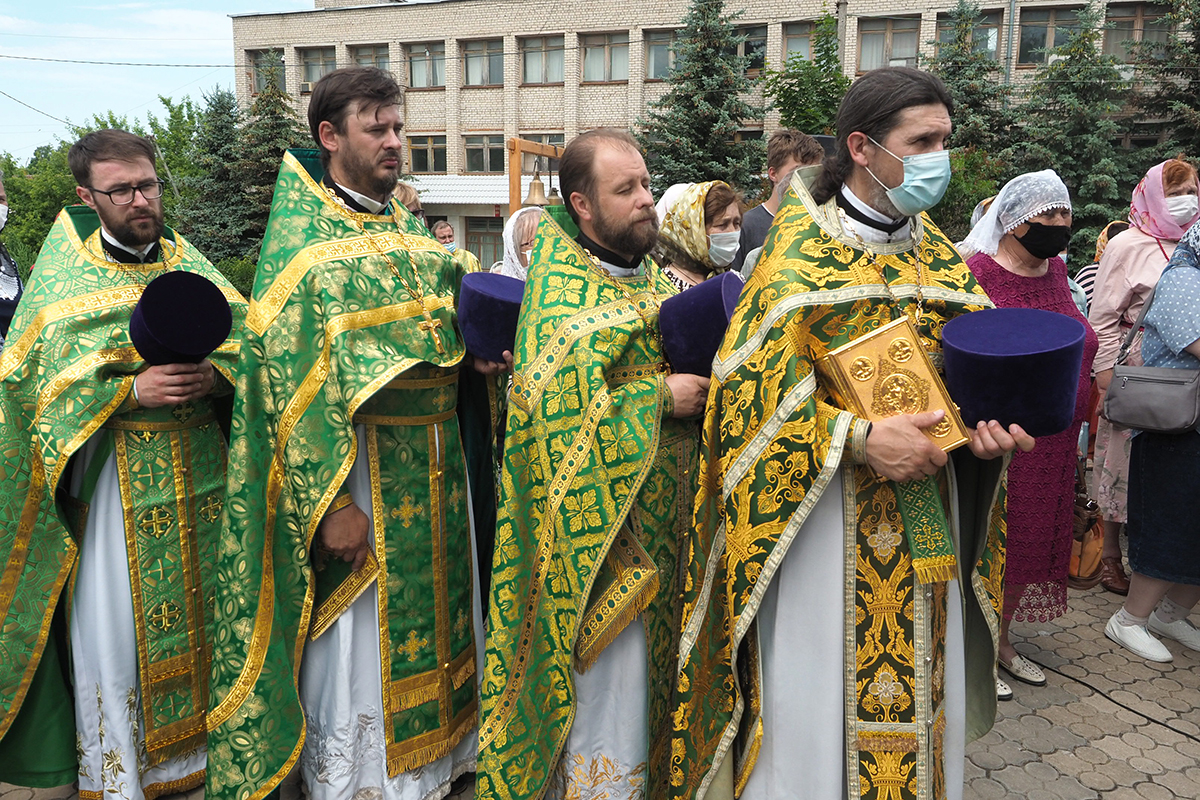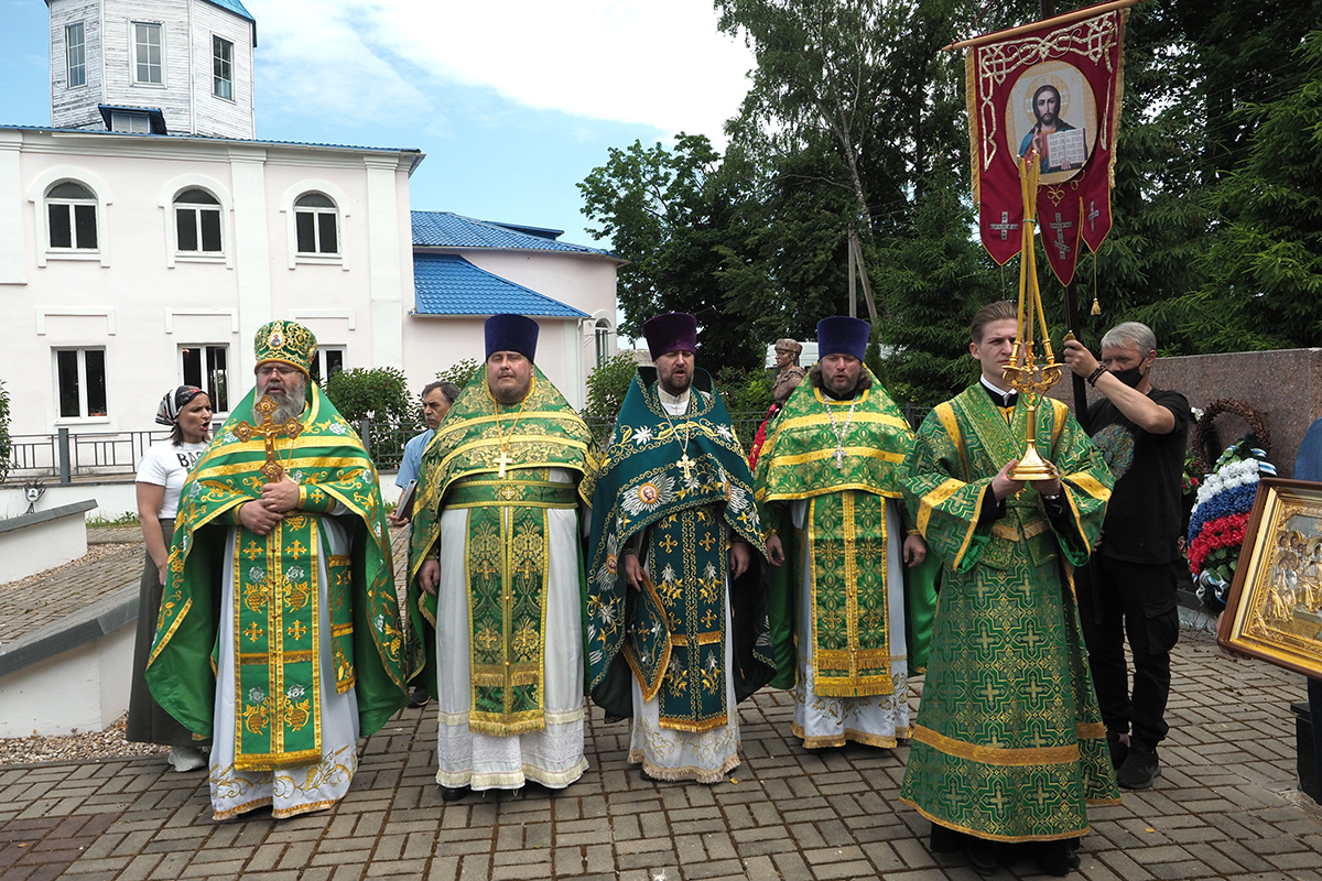Митрополит Исидор в сослужении духовенства совершил заупокойную литию на территории храма у мемориала павших в Великую Отечественную войну.