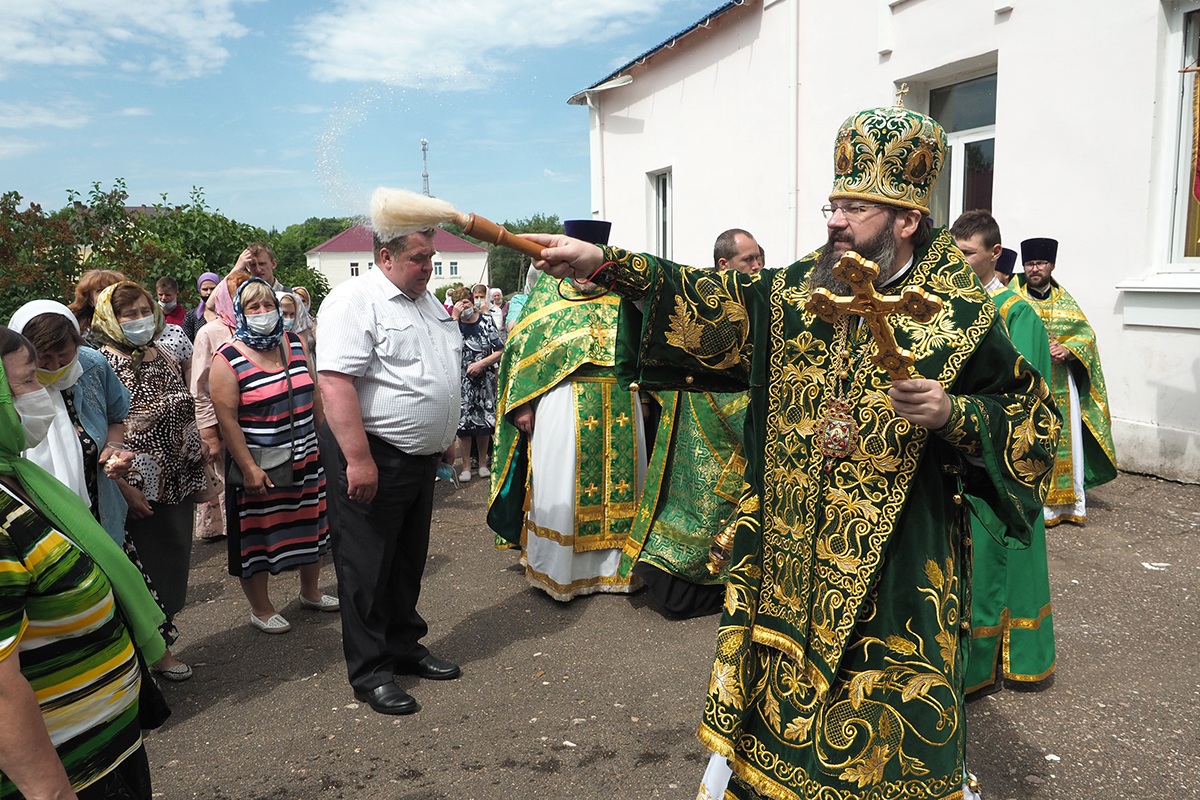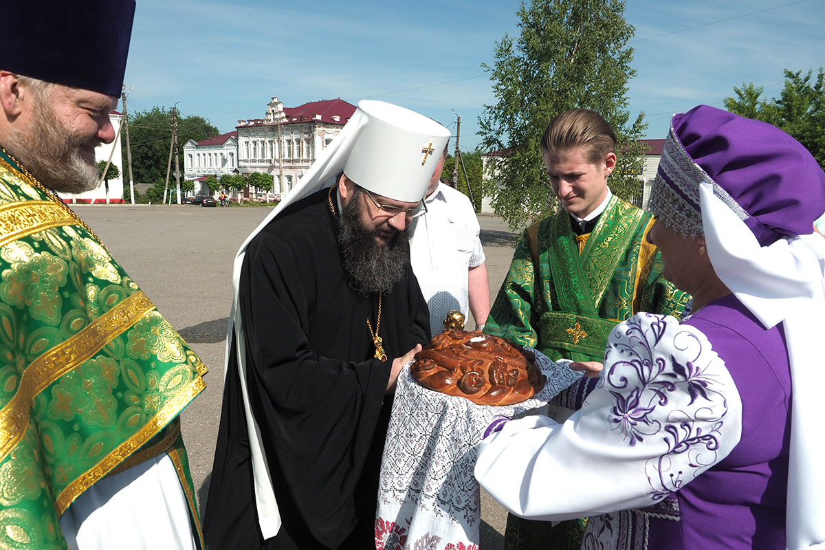 В завершении богослужения Митрополит Исидор поздравил с престольным праздником и с Днем города Духовщины всех собравшихся, подчеркнув ответственность каждого православного христианина в деле служения на благо Отечества.