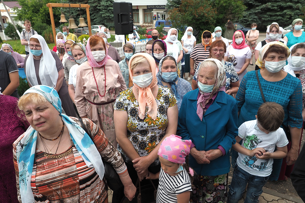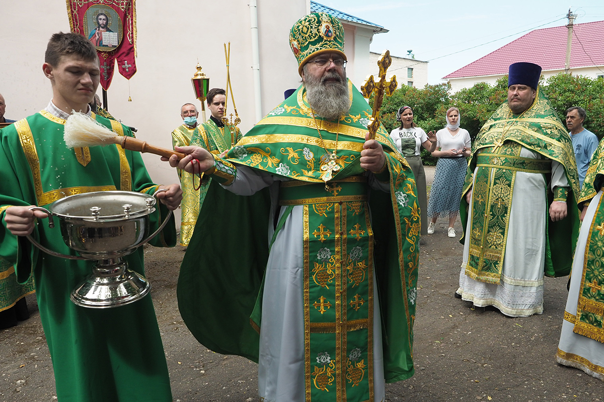 Традиционно в завершении литургии был совершен крестный ход вокруг храма.
