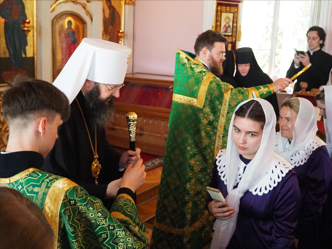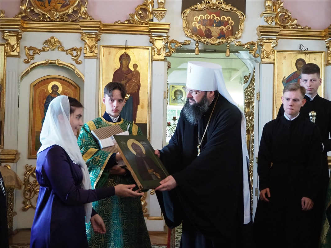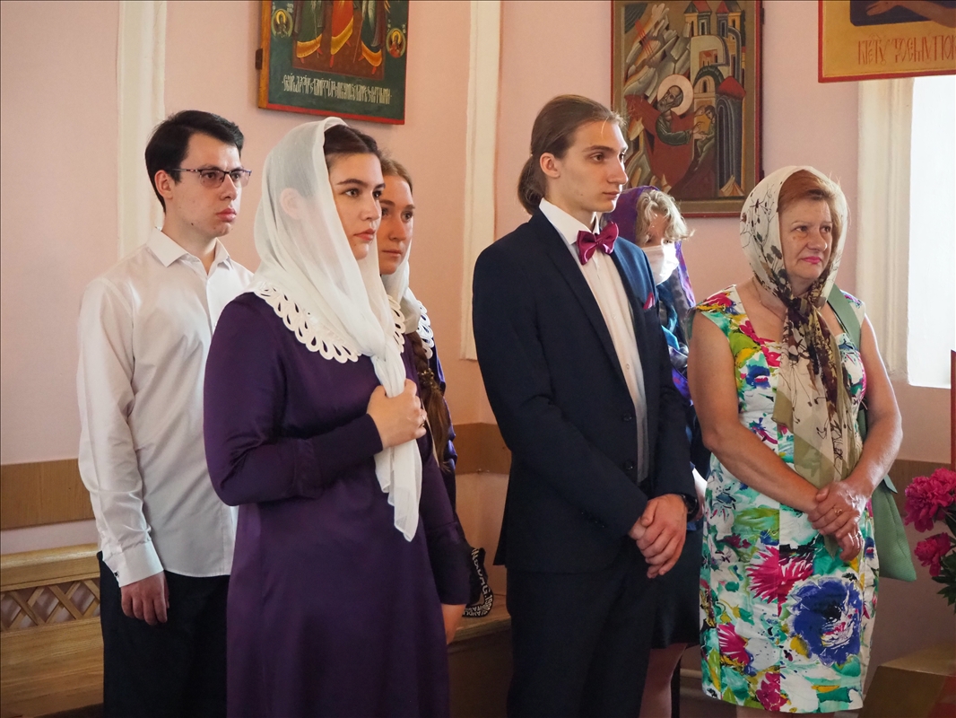 Этот торжественный день начался для выпускников и педагогов с Божественной литургии в Иоанно-Предтеченском храме при ЦПЦС. Богослужение возглавил митрополит Смоленский и Дорогобужский Исидор.