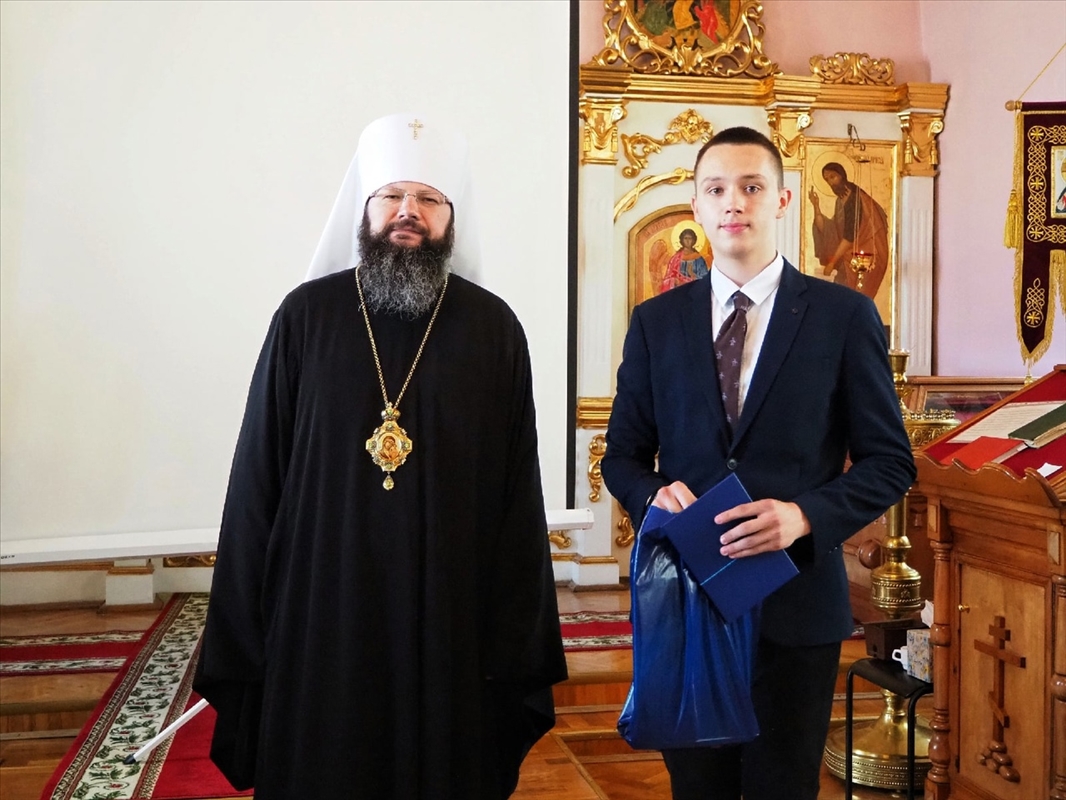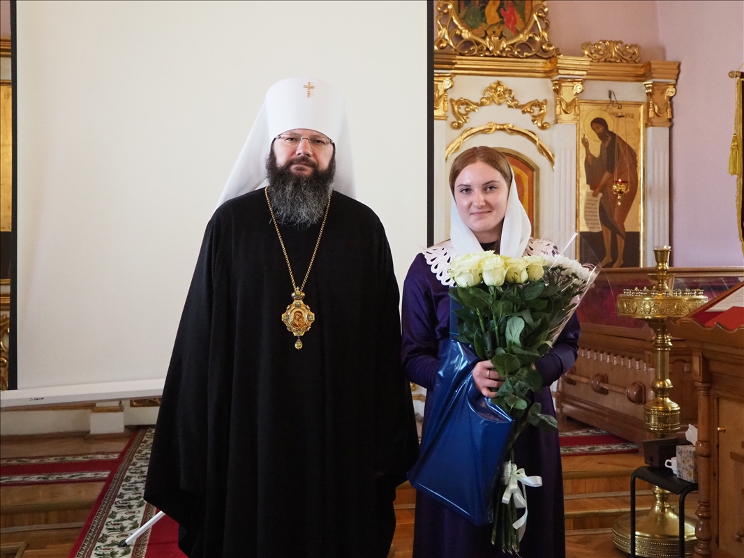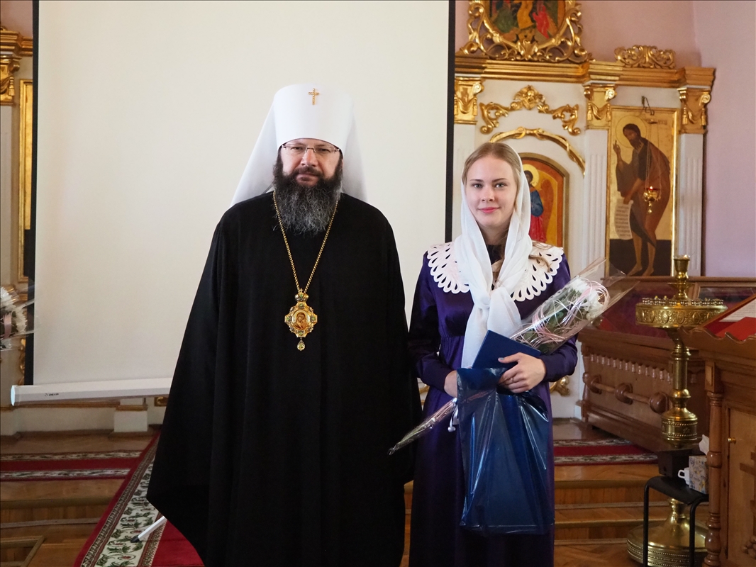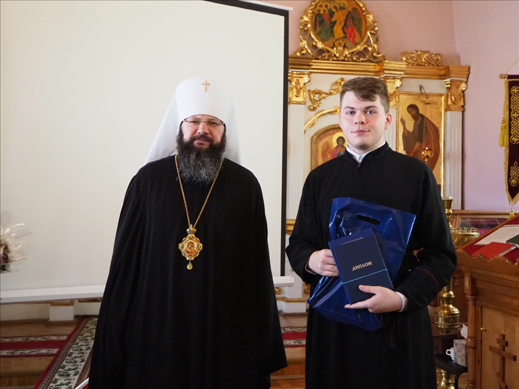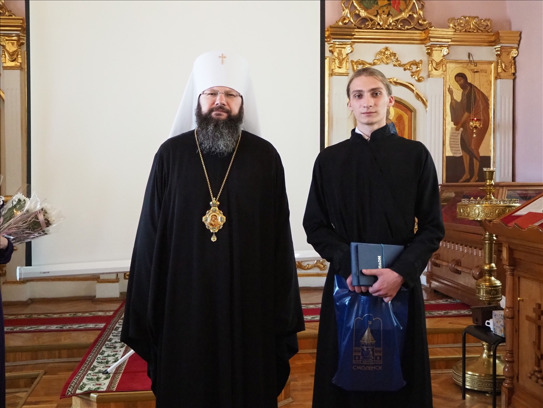 Дипломы и памятные подарки выпускникам вручил митрополит Смоленский и Дорогобужский Исидор. Архипастырь сердечно поздравил молодых специалистов и пожелал им благословения Божия на пути их будущего служения.
