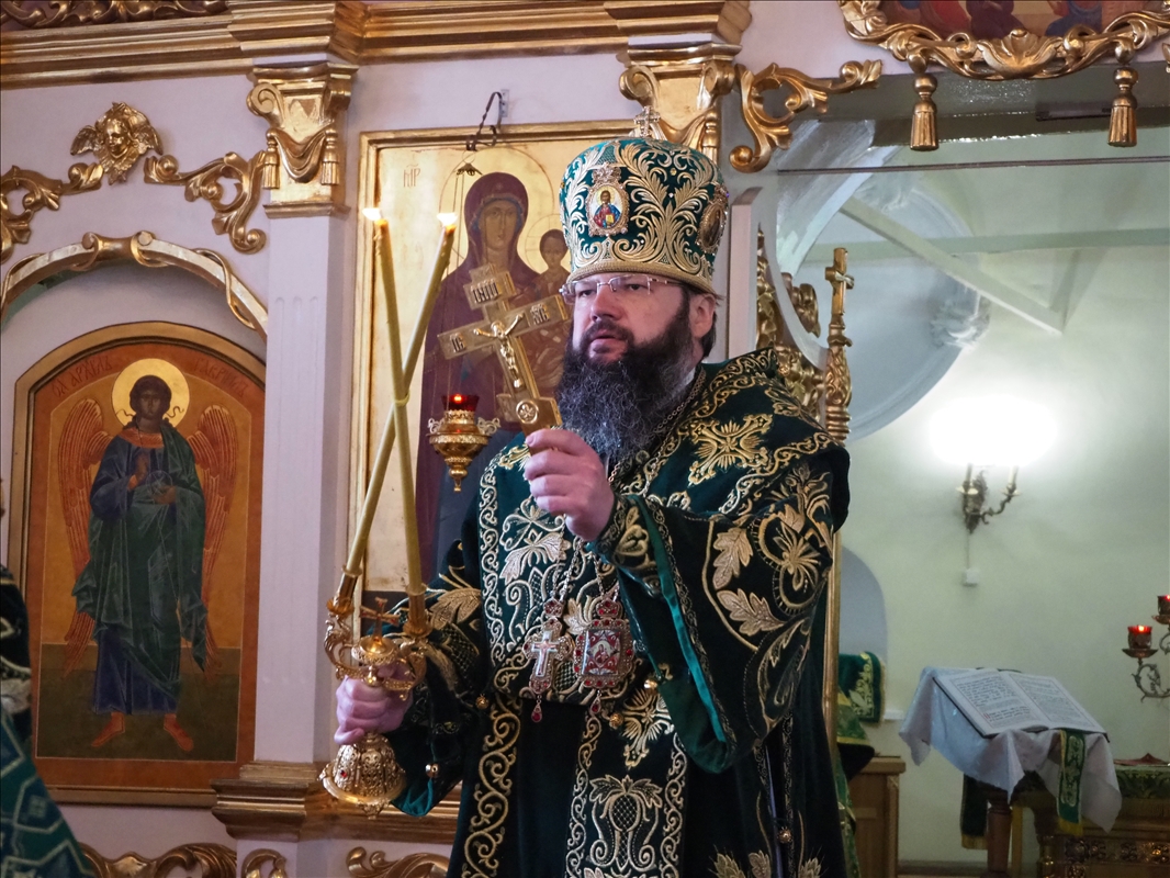 После чтения Святого Евангелия архипастырь обратился к молящимся с проповедью.