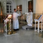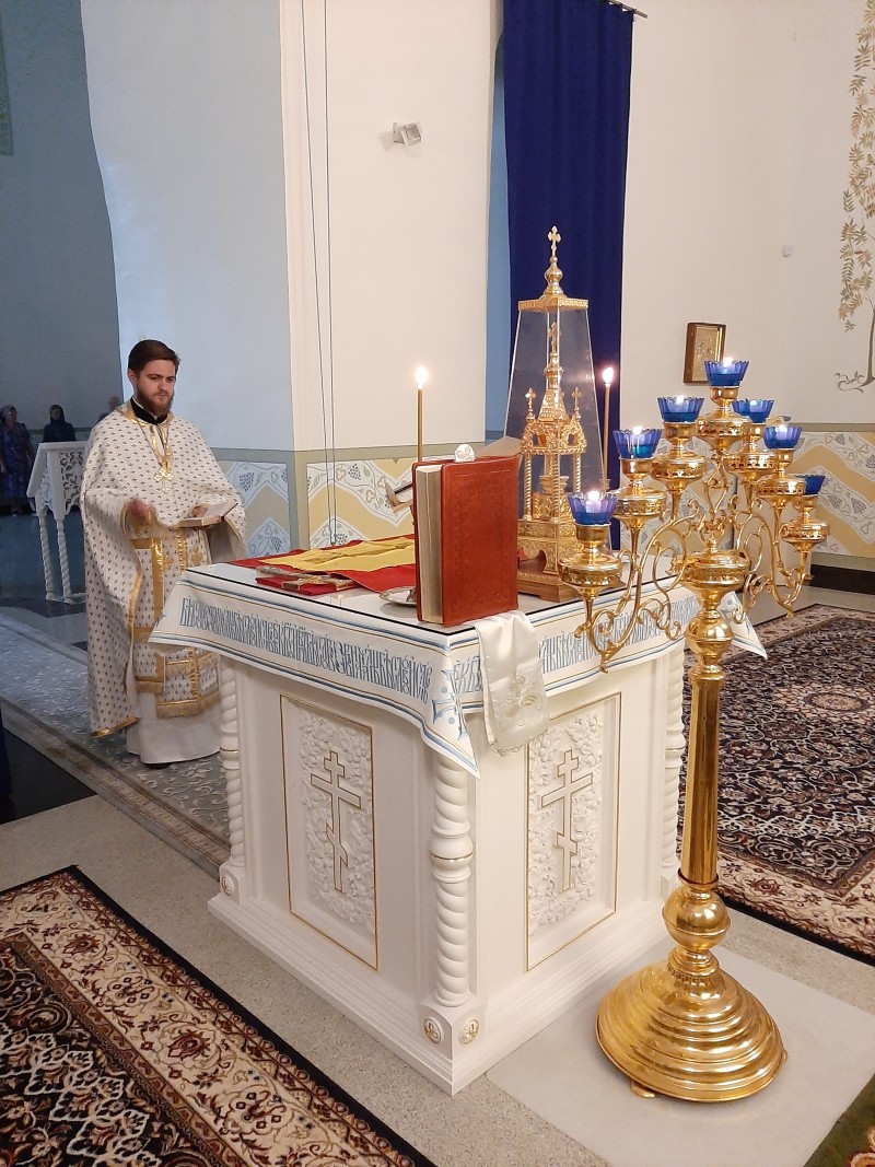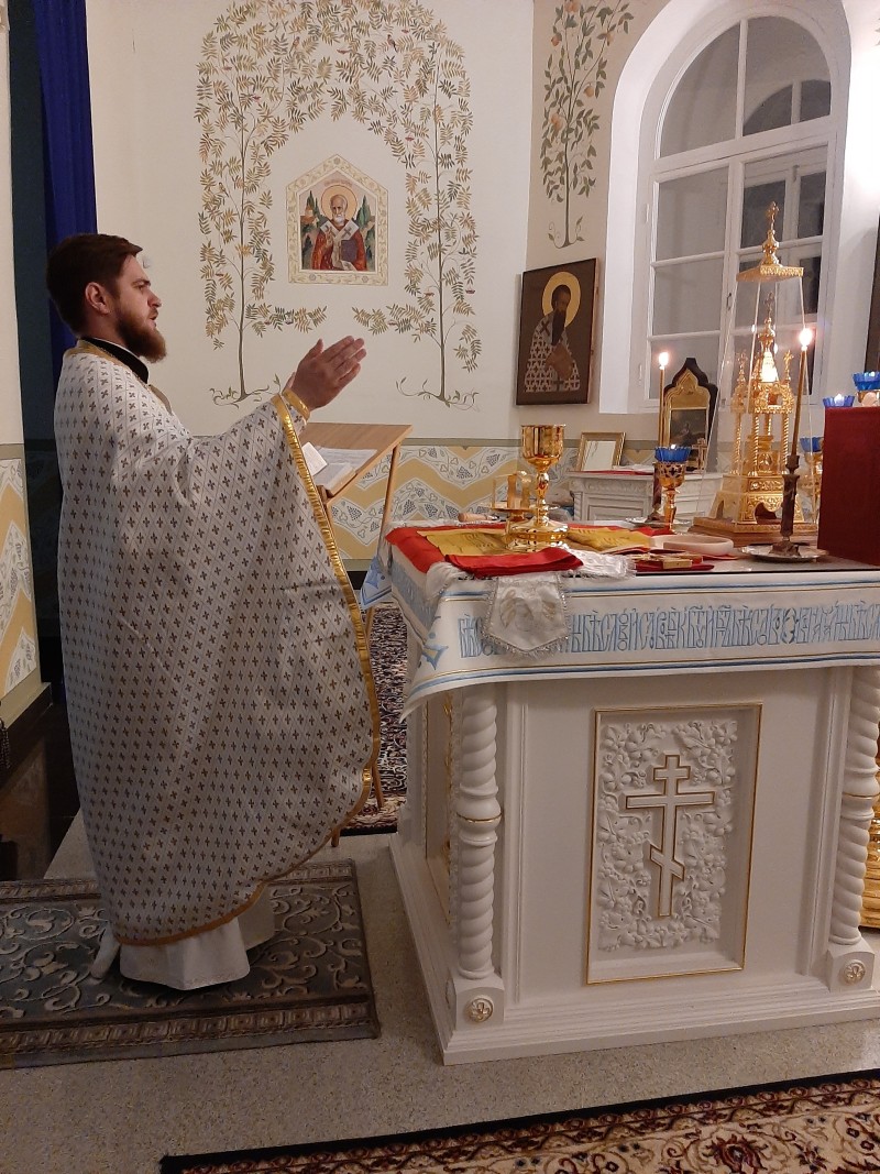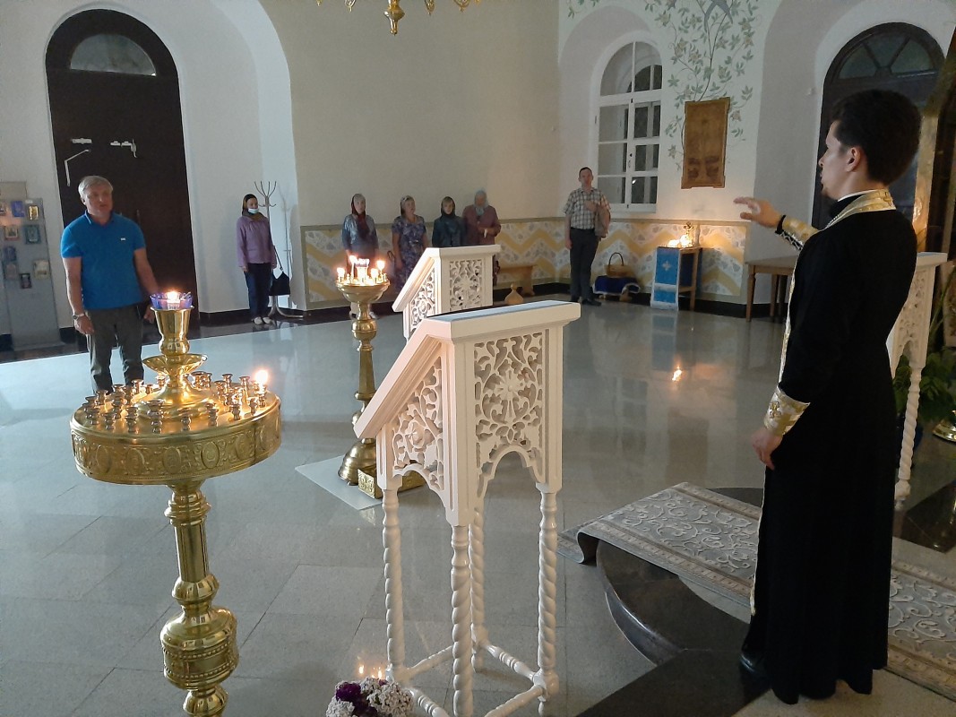 Богослужение совершил настоятель храма иерей Лев Гарин в сослужении иерея Максима Костюкова. На богослужении были вознесены молитвы о павших защитниках Отечества и всех, пострадавших в годы Великой Отечественной войны. По окончании Литургии была совершена заупокойная лития во дворе храма с возжиганием лампад.
