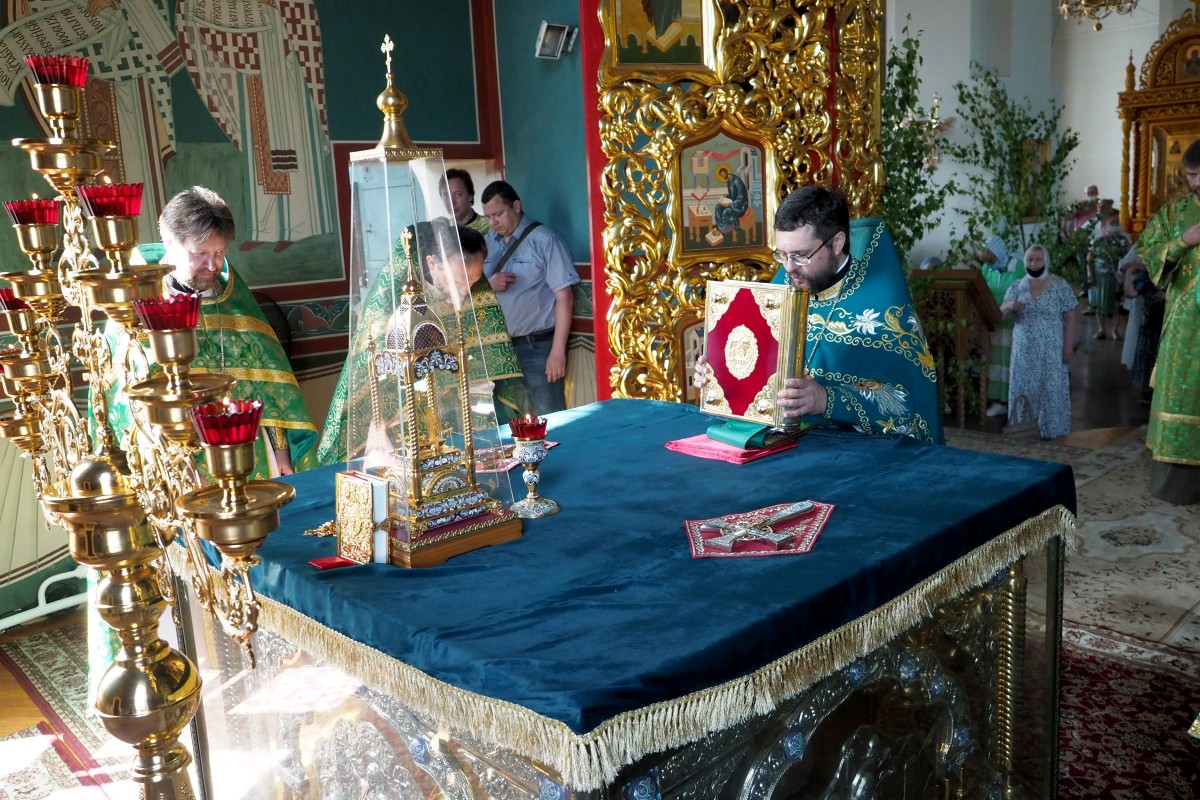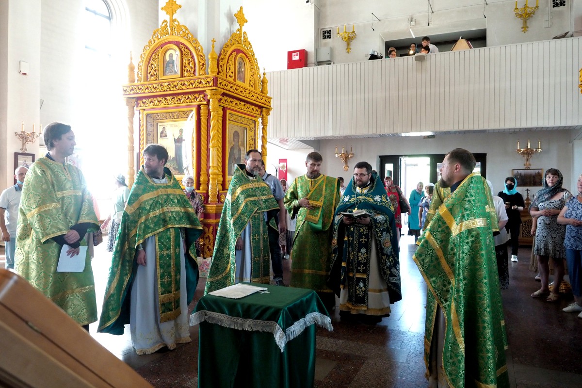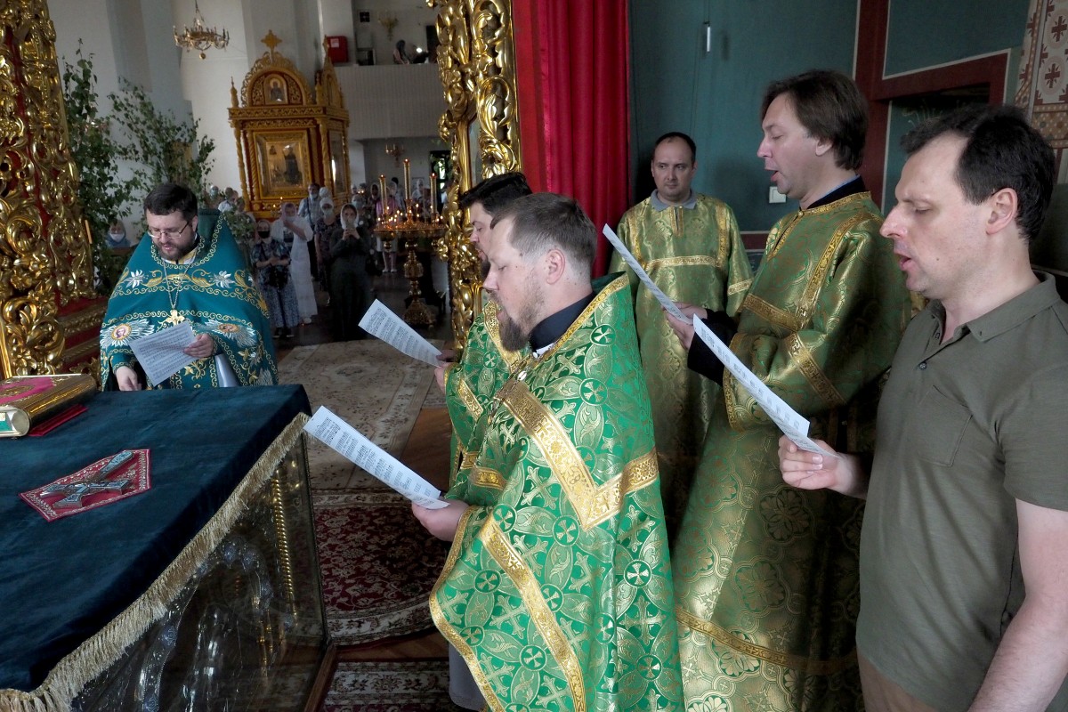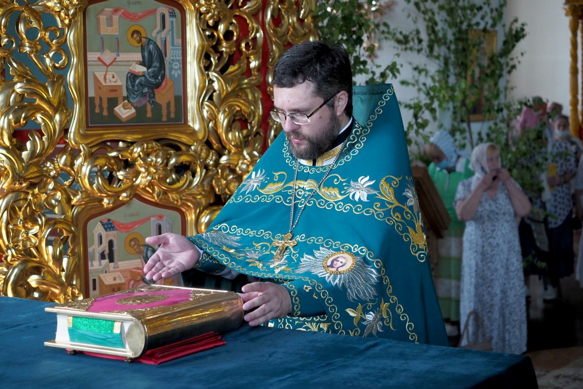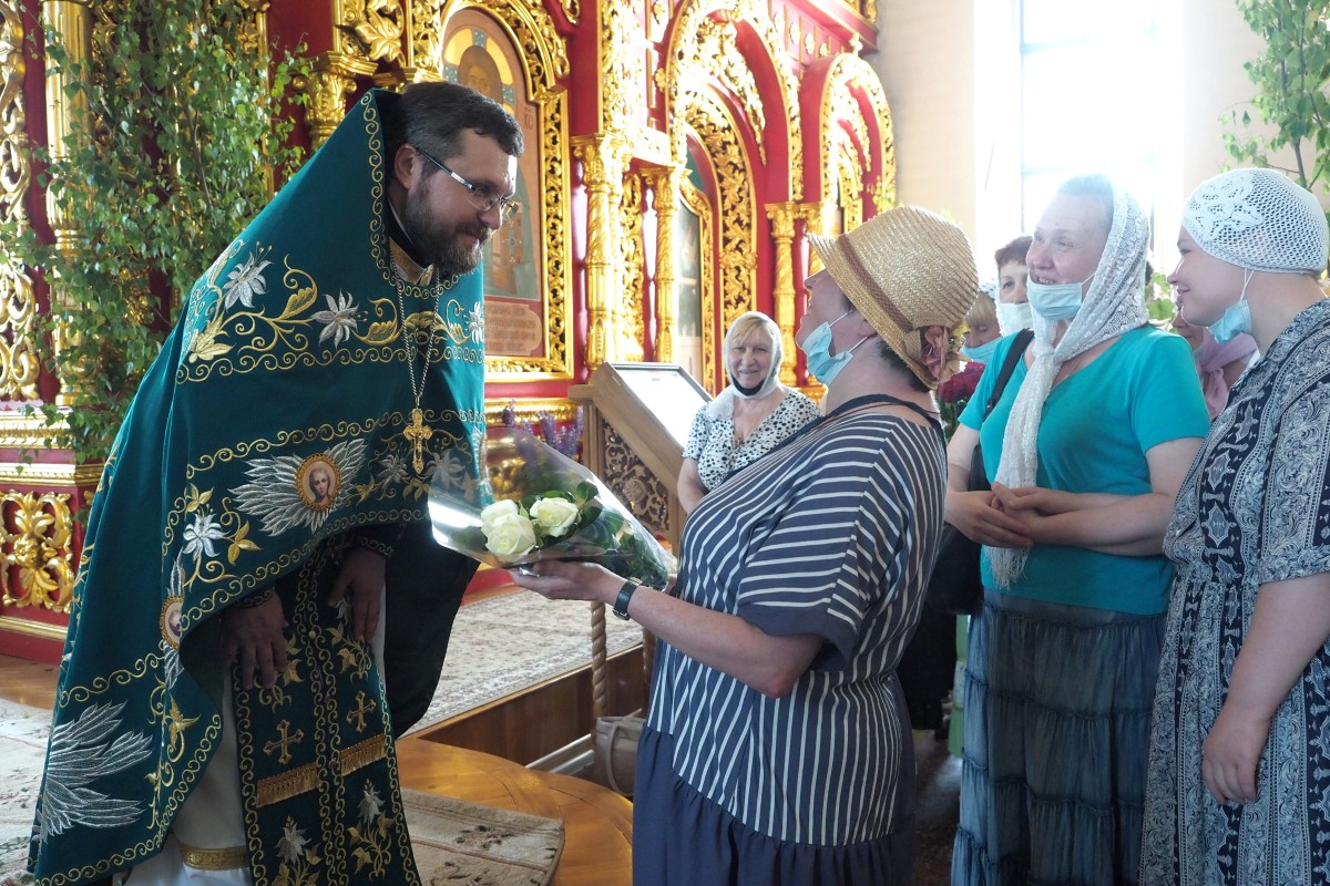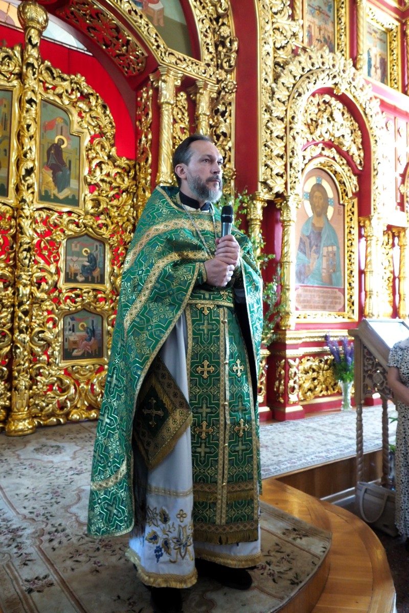 Перед Таинством Святого Причащения протоиерей Василий Гелеван обратился к верующим с проповедью, в которой рассуждал о сегодняшнем Евангельском и Апостольском чтении, а также отметил, что утром этого дня, 80 лет назад, в день Всех святых, в земле Российской просиявших, на территорию Советского Союза напали немецко-фашистские оккупанты. Спустя много лет память о подвиге нашего народа под сонмом всех святых не забыта. В ночь с 21 на 22 июня во всех уголках России совершаются памятные акции и богослужения.