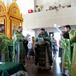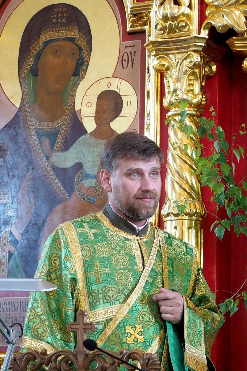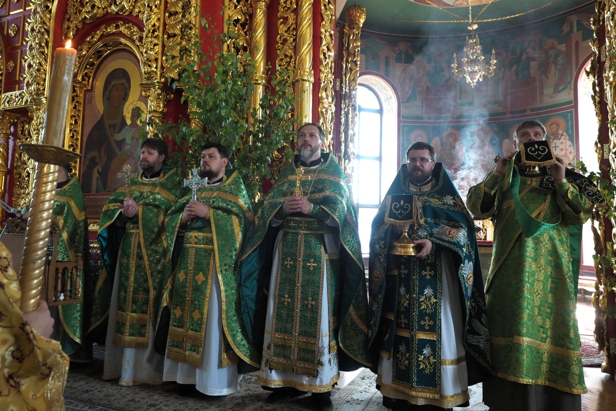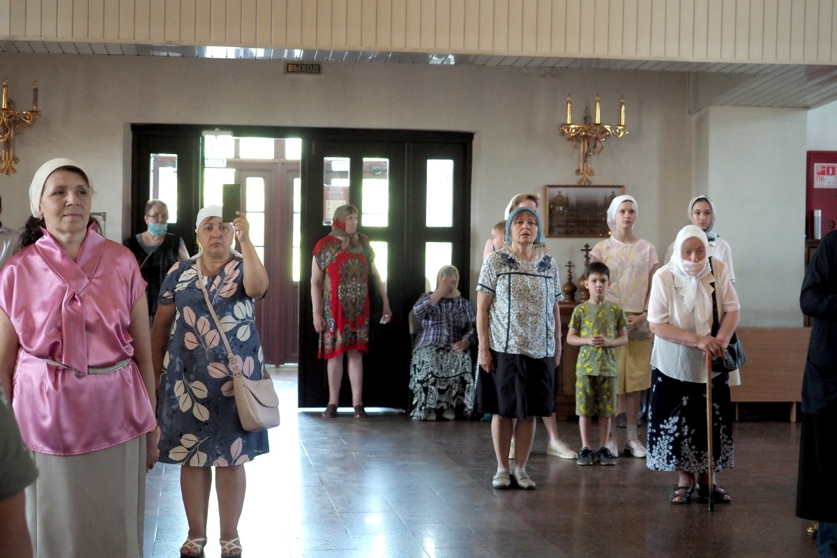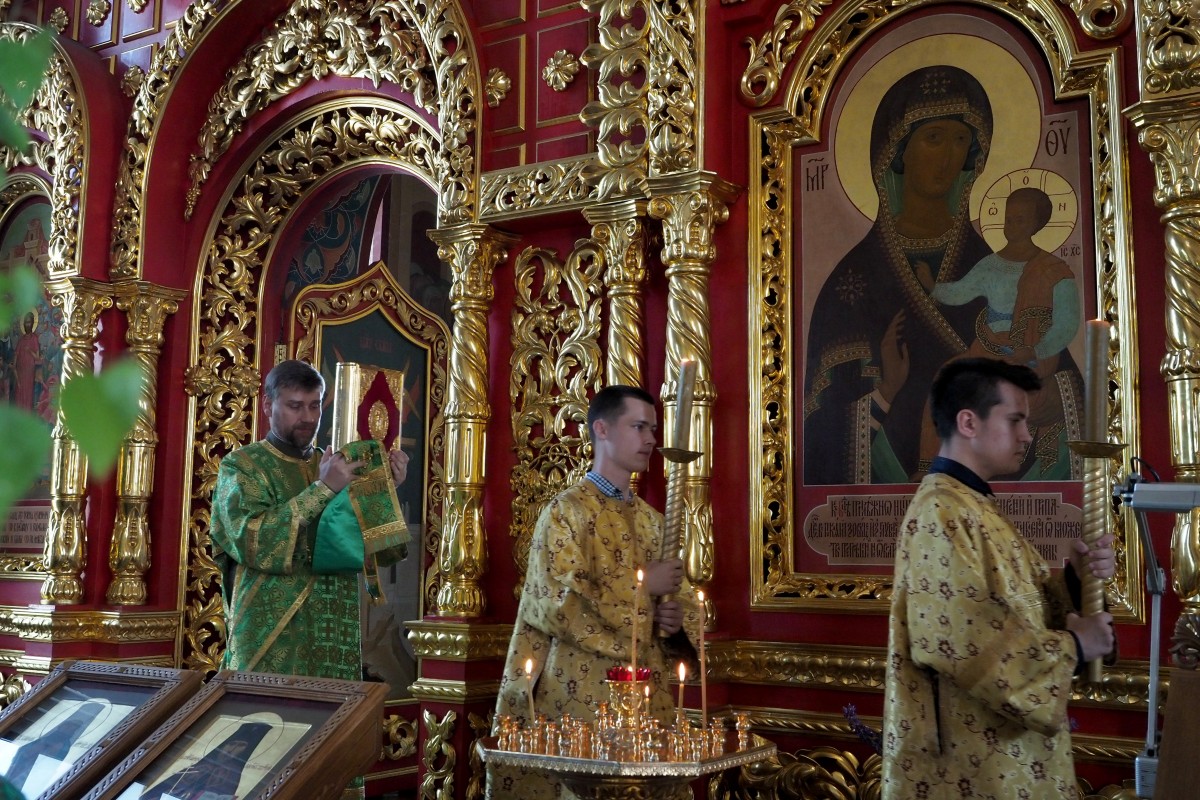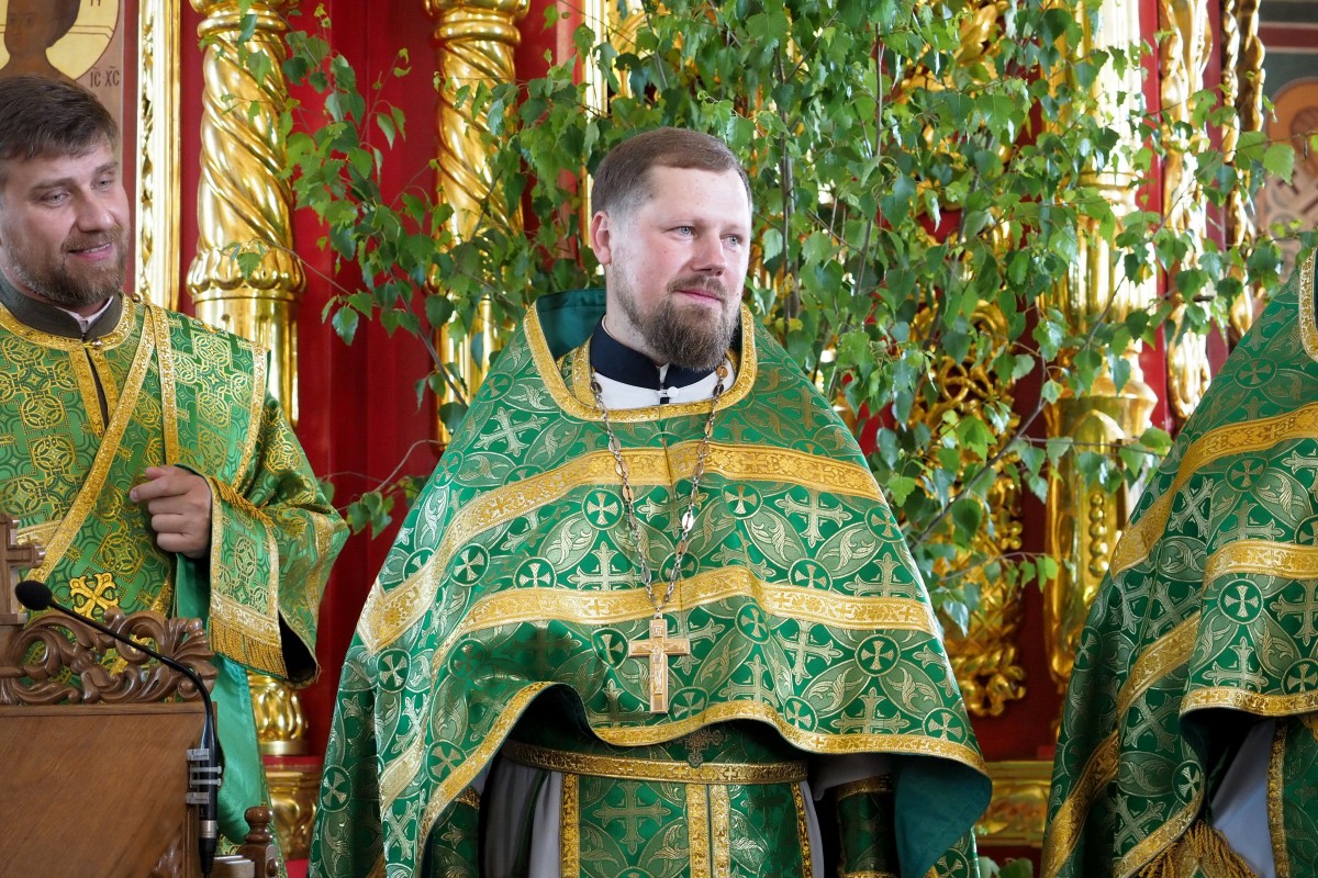 Перед Таинством Святого Причащения протоиерей Василий Гелеван обратился к верующим с проповедью, в которой рассуждал о сегодняшнем Евангельском и Апостольском чтении, а также отметил, что утром этого дня, 80 лет назад, в день Всех святых, в земле Российской просиявших, на территорию Советского Союза напали немецко-фашистские оккупанты. Спустя много лет память о подвиге нашего народа под сонмом всех святых не забыта. В ночь с 21 на 22 июня во всех уголках России совершаются памятные акции и богослужения.