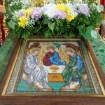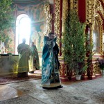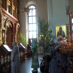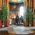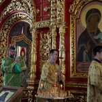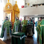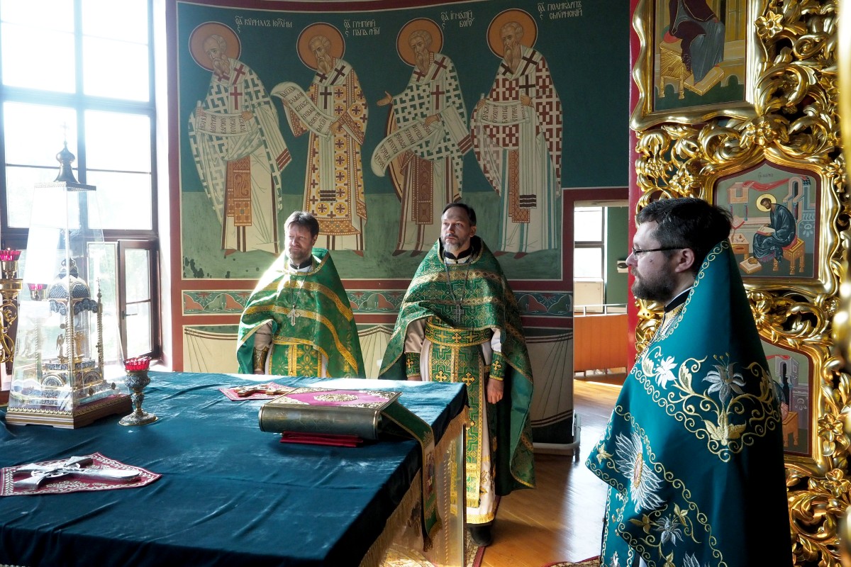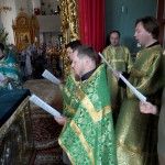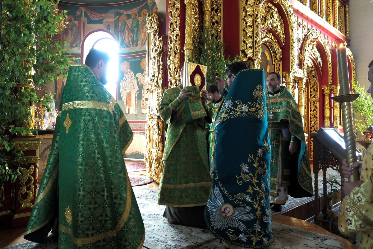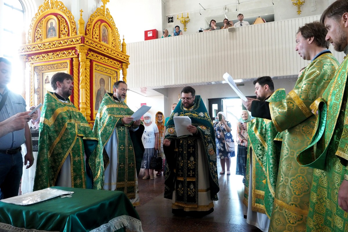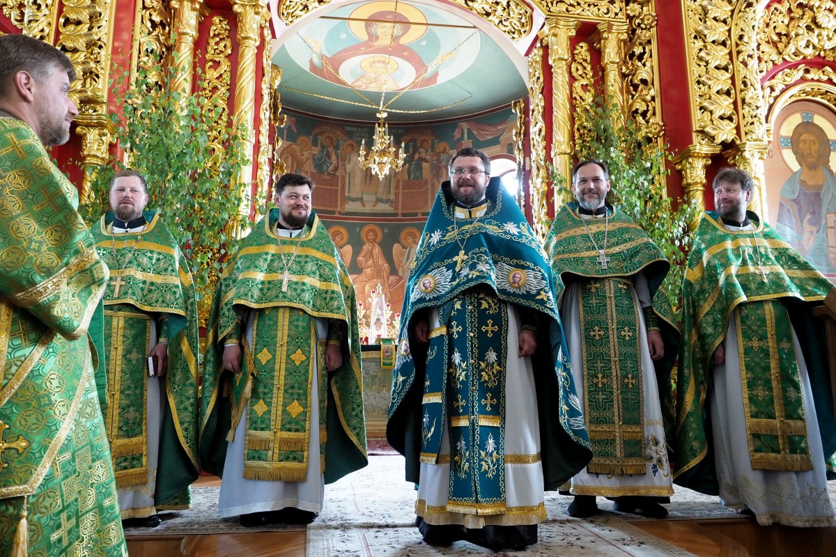 В завершении Божественной литургии священнослужители исполнили славление Всем святым, в земле Российской просиявшим.