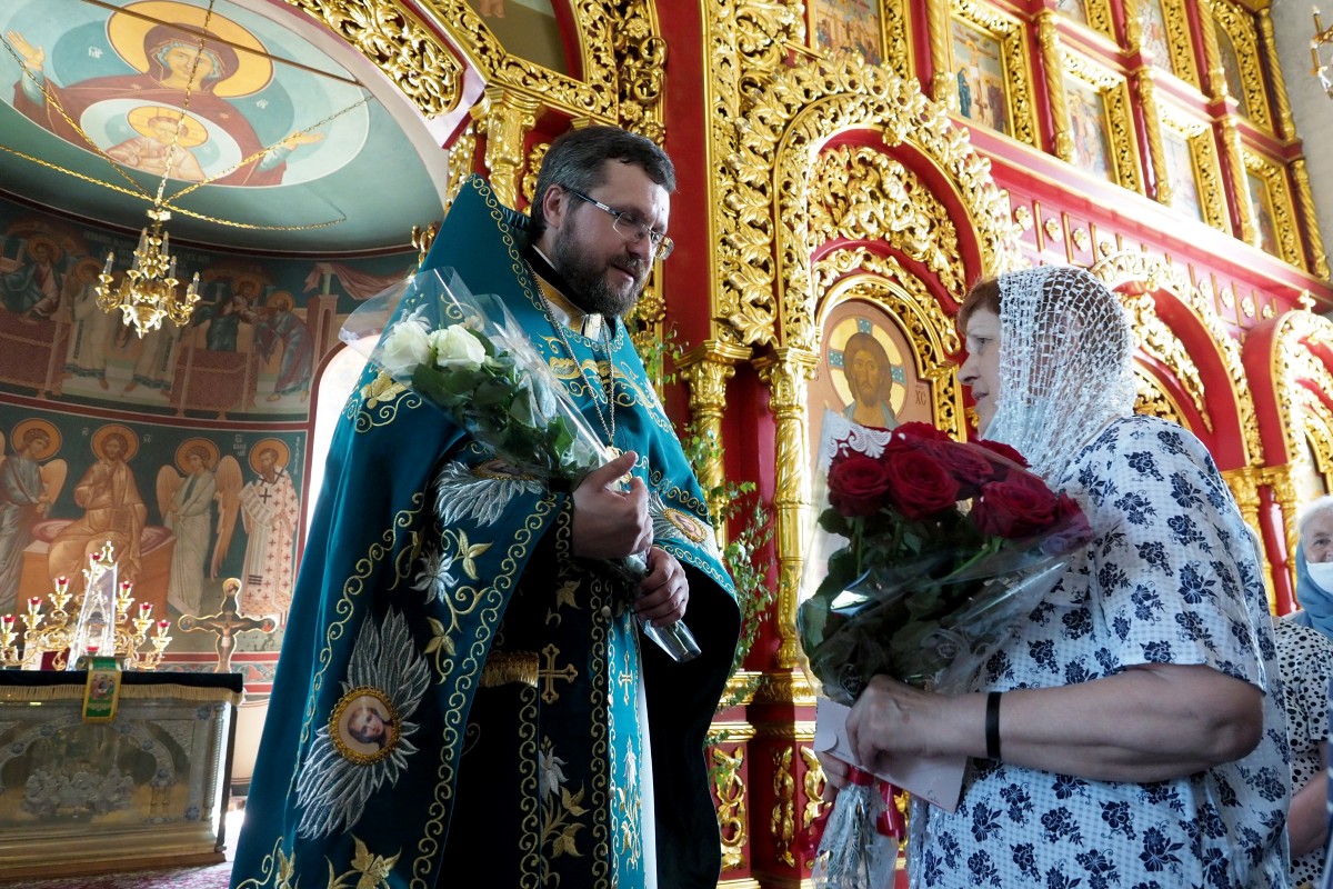 Протоиерей Валерий Рябоконь представил своих однокурсников молящимся и выразил искреннюю благодарность всем, разделившим в этот день радость совместной молитвы. Прихожане поздравили настоятеля храма с прошедшим Днем рождения и с 20-летием выпуска Смоленской Православной Духовной семинарии.