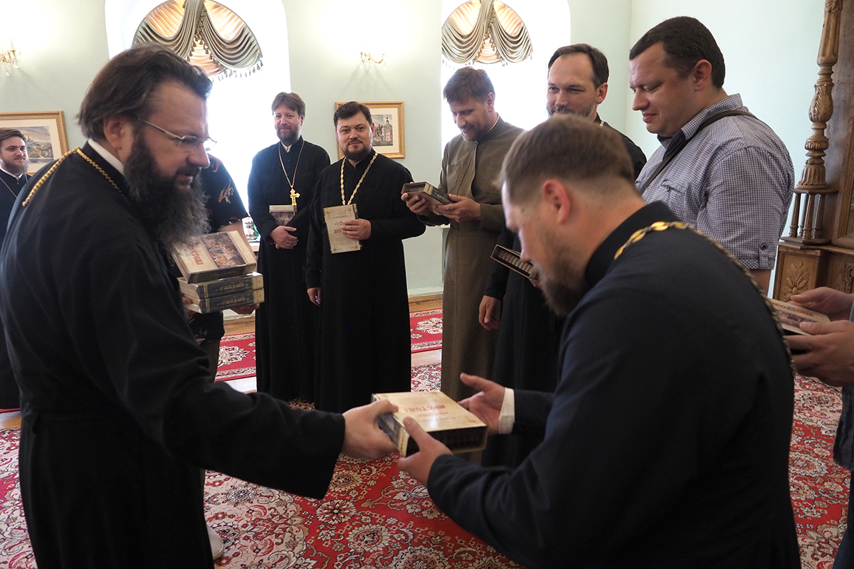 В этот же день в Тронном зале Епархиального Управления Глава Смоленской митрополии, ректор Смоленской Православной Духовной семинарии, митрополит Смоленский и Дорогобужский Исидор встретился с выпускниками-семинаристами.