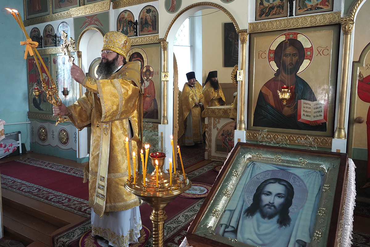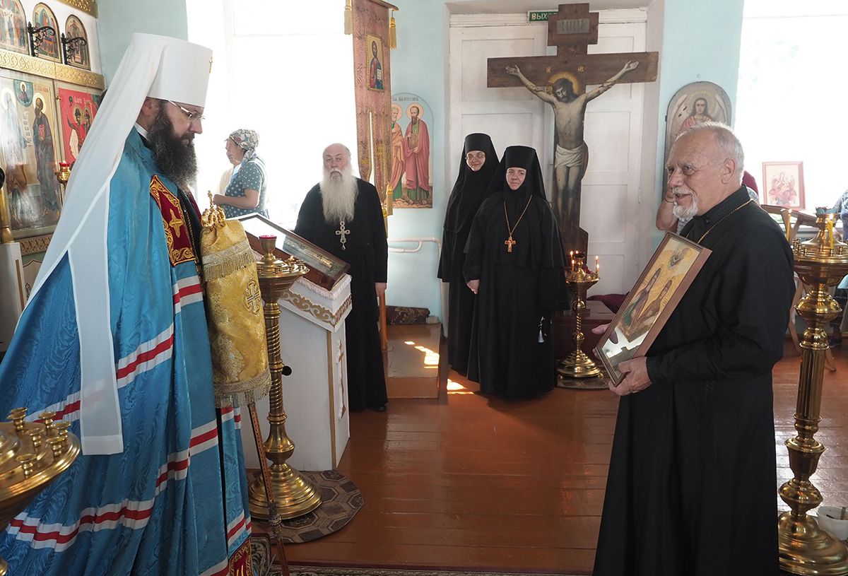 В завершение Божественной литургии архипастырь поздравил настоятеля храма и всех молящихся с праздником в честь святых первоверховных апостолов Петра и Павла и передал слова поздравления всем, кто сегодня не смог прийти на торжественное богослужение.
