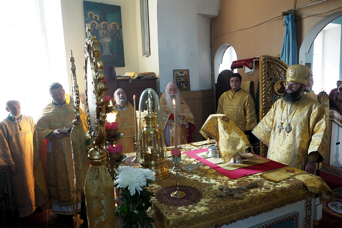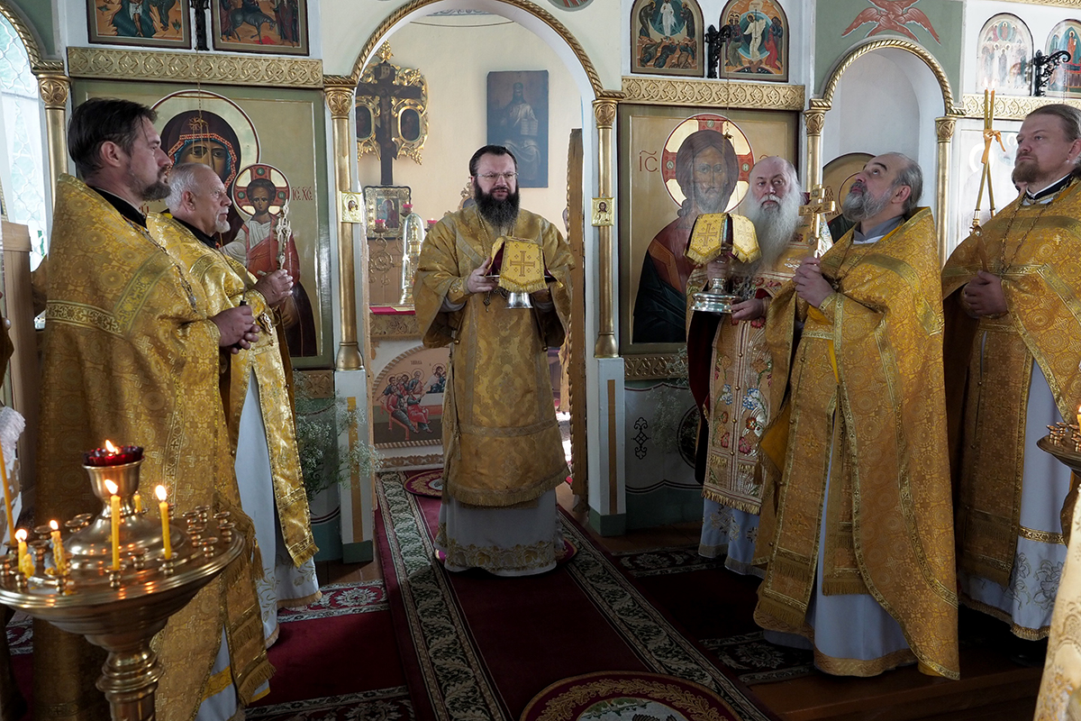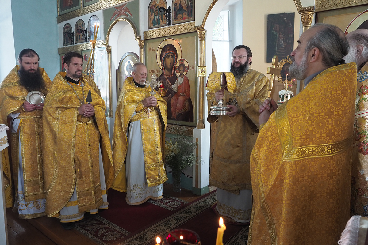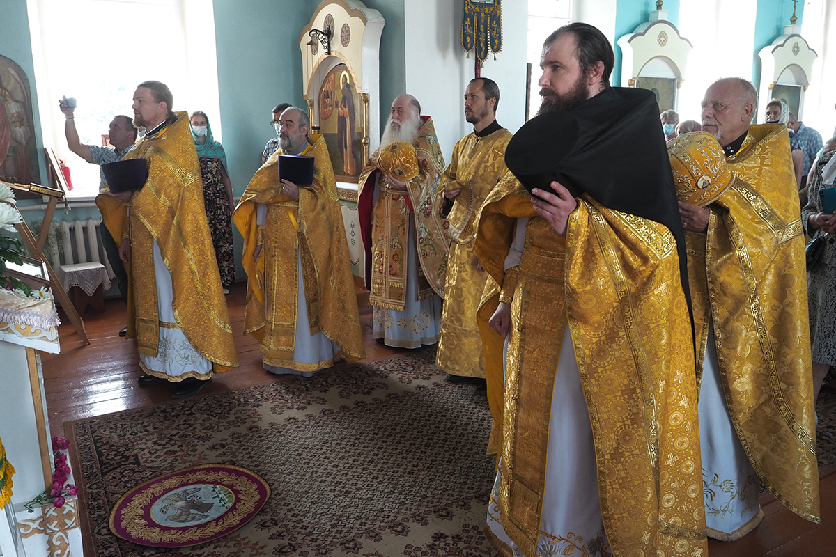 Его Высокопреосвященству сослужил настоятель храма протоиерей Николай Канчук, настоятель Свято-Троицкого Герасимо-Болдинского мужского монастыря архимандрит Антоний (Мезенцов), настоятель храма в честь святого мученика Андрея Стратилата села Алексино иерей Алексий Куликов и духовенство Дорогобужского района.