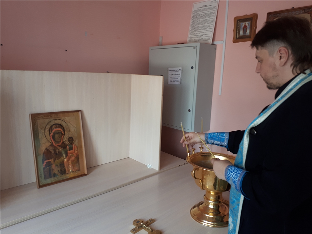 Чин освящения совершил клирик храма-памятника в честь Воскресения Христова сельского поселения Катынское Смоленского района (Архиерейское подворье), епархиальный координатор по утверждению трезвости иерей Дионисий Новиков, в сослужении клирика Свято-Успенского кафедрального собора г. Смоленска диакона Тарасия Супрыкина.