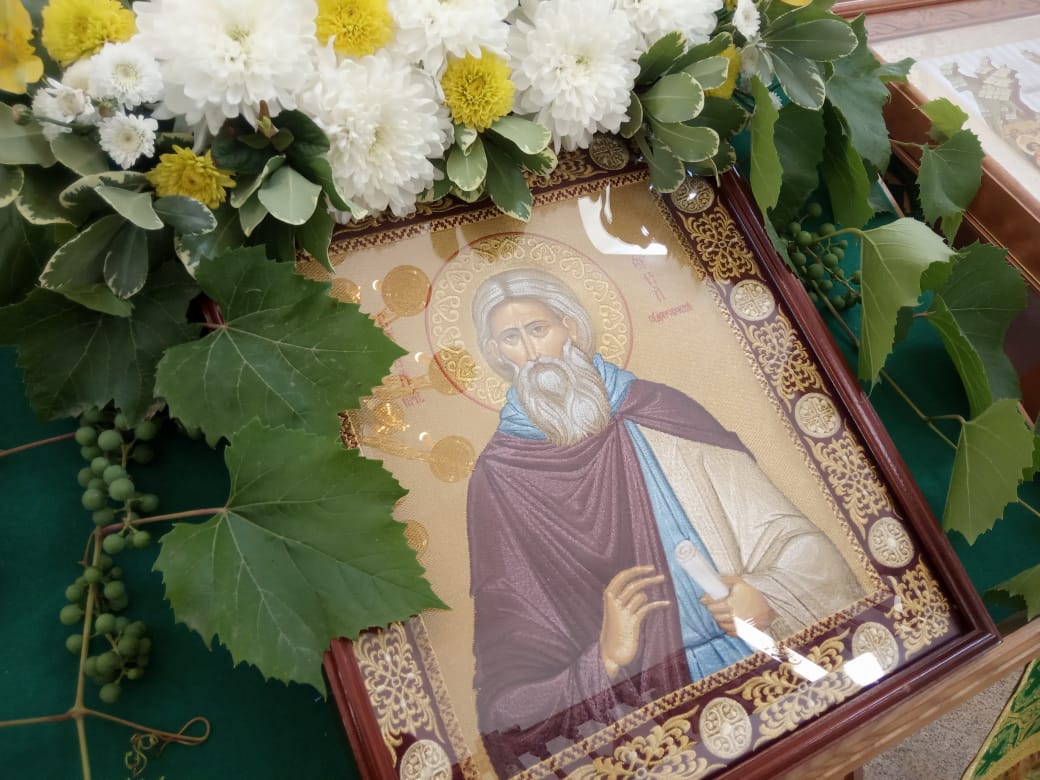 Всем молящимся на молитвенную память были розданы иконки преподобного Сергия Радонежского и шоколадки.