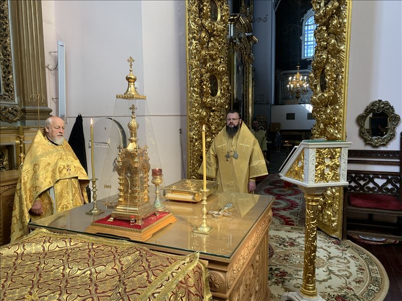 Его Высокопреосвященству сослужило духовенство кафедрального храма.