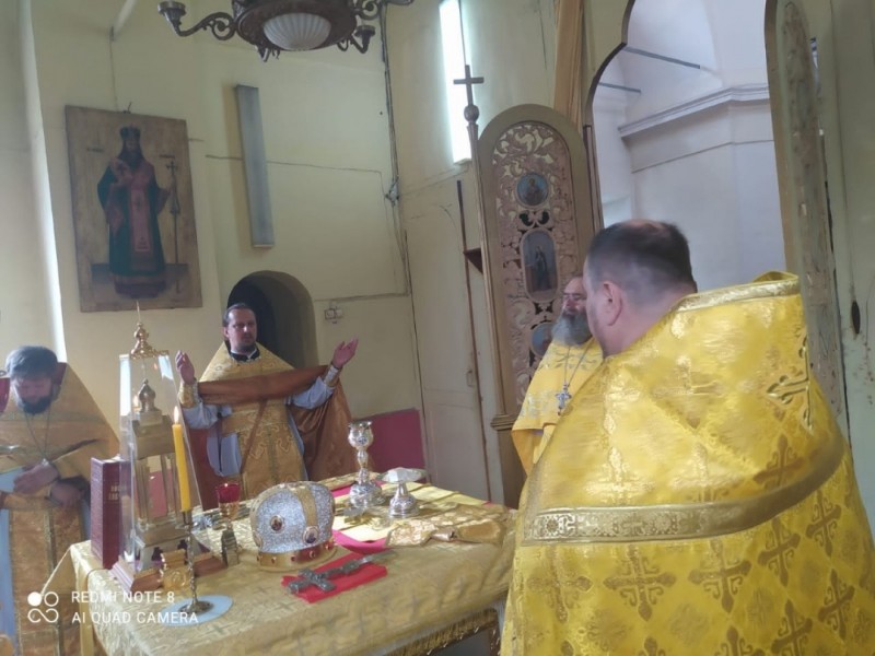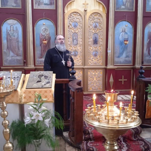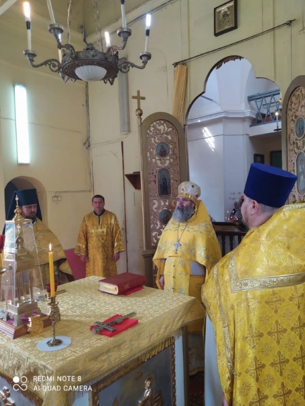 За богослужением благочинному сослужили наместник Авраамиева мужского монастыря г. Смоленска игумен Николай (Золотов), настоятель Николо-Георгиевского храма д. Смогири