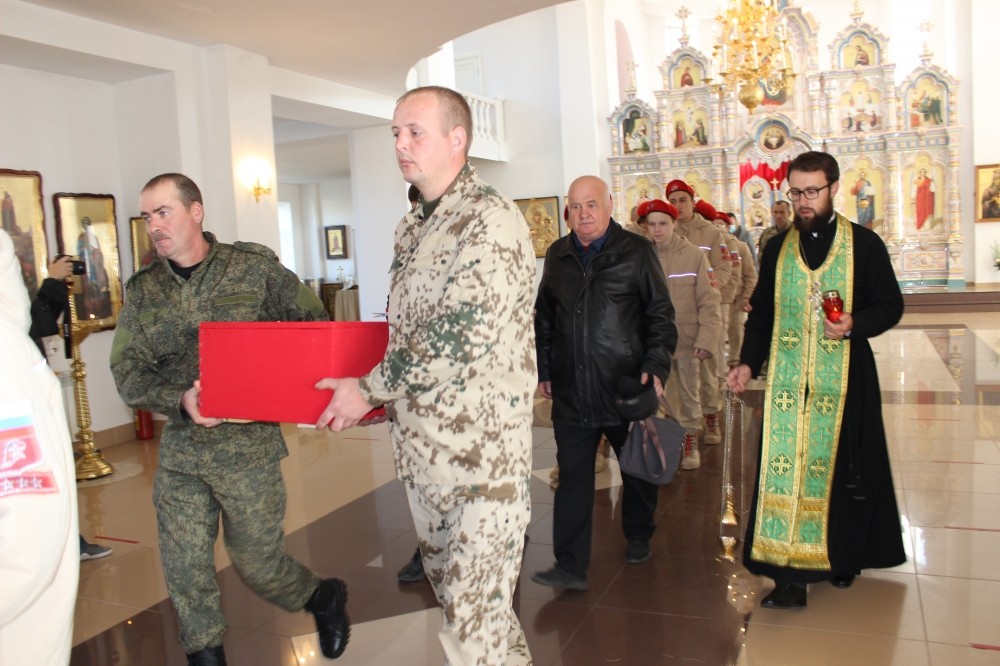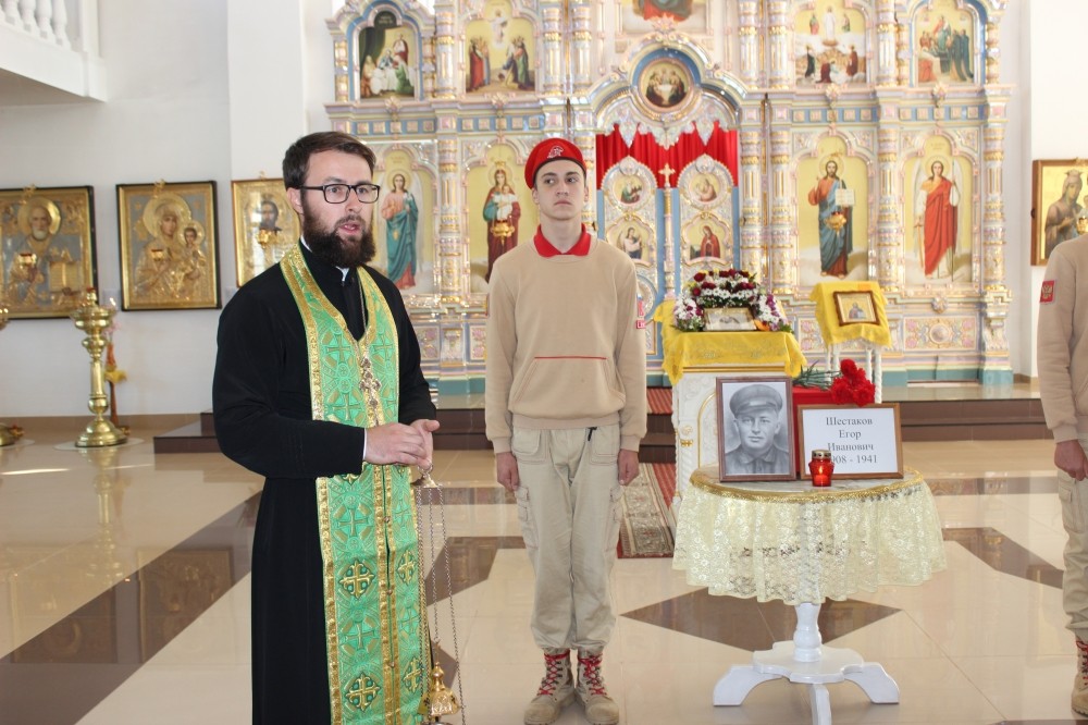 Церемония прощания с бойцом и передача его останков родным прошла в соборном храме Георгия Победоносца г. Ярцево.