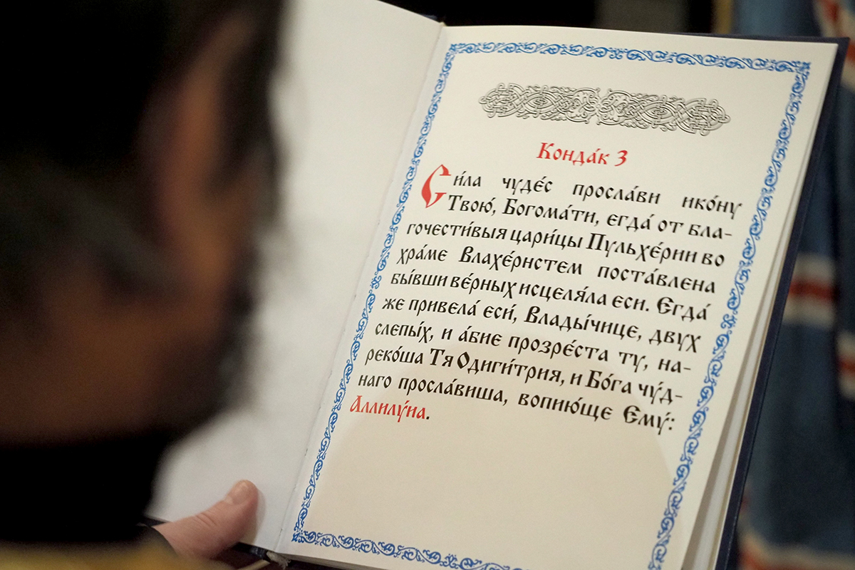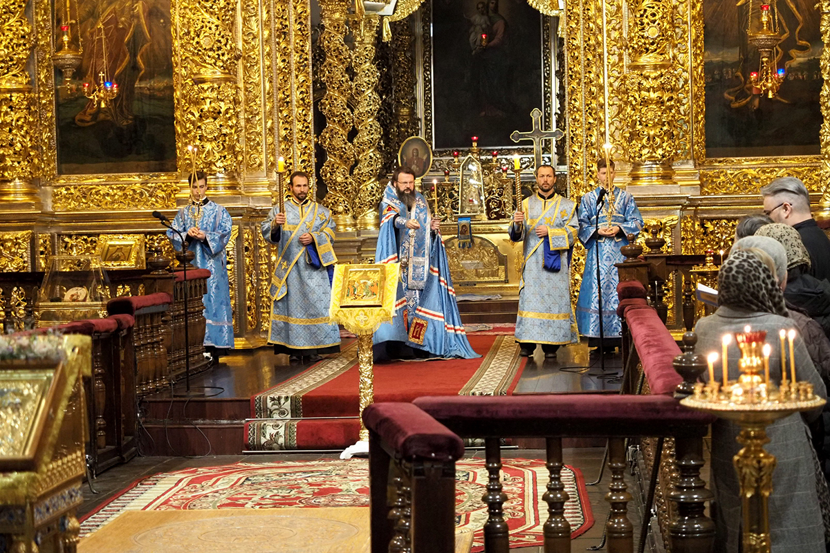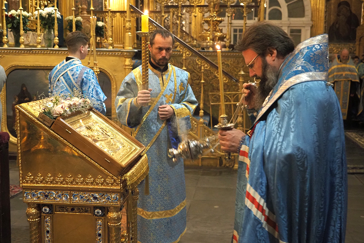 Архипастырь возглавил акафистное чтение у иконы Одигитрии в Свято-Успенском соборе