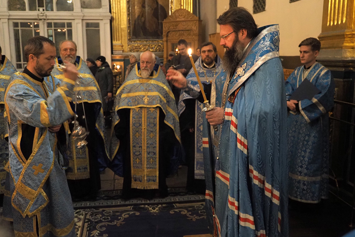19 октября 2021 года, во вторник Седмицы 18-й по Пятидесятнице, митрополит Смоленский и Дорогобужский Исидор совершил вечернее богослужение с чтением акафиста в честь Смоленской иконы Божьей Матери «Одигитрия» в Свято-Успенском кафедральном соборе.