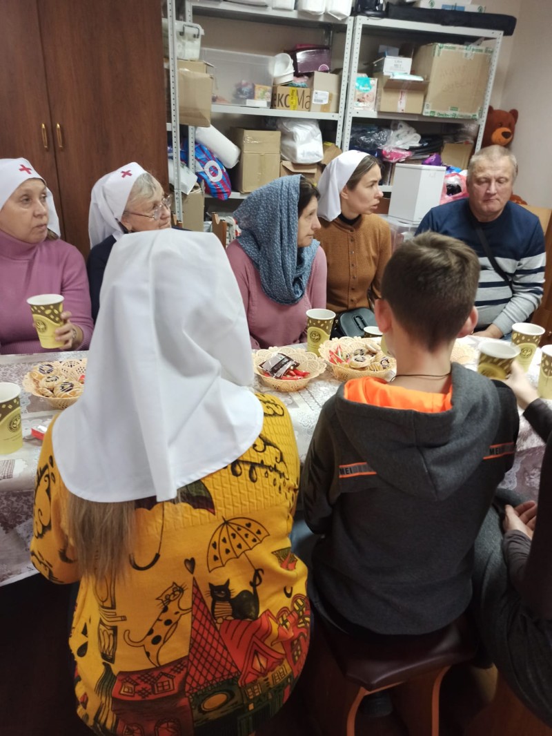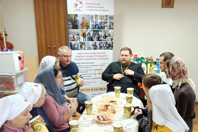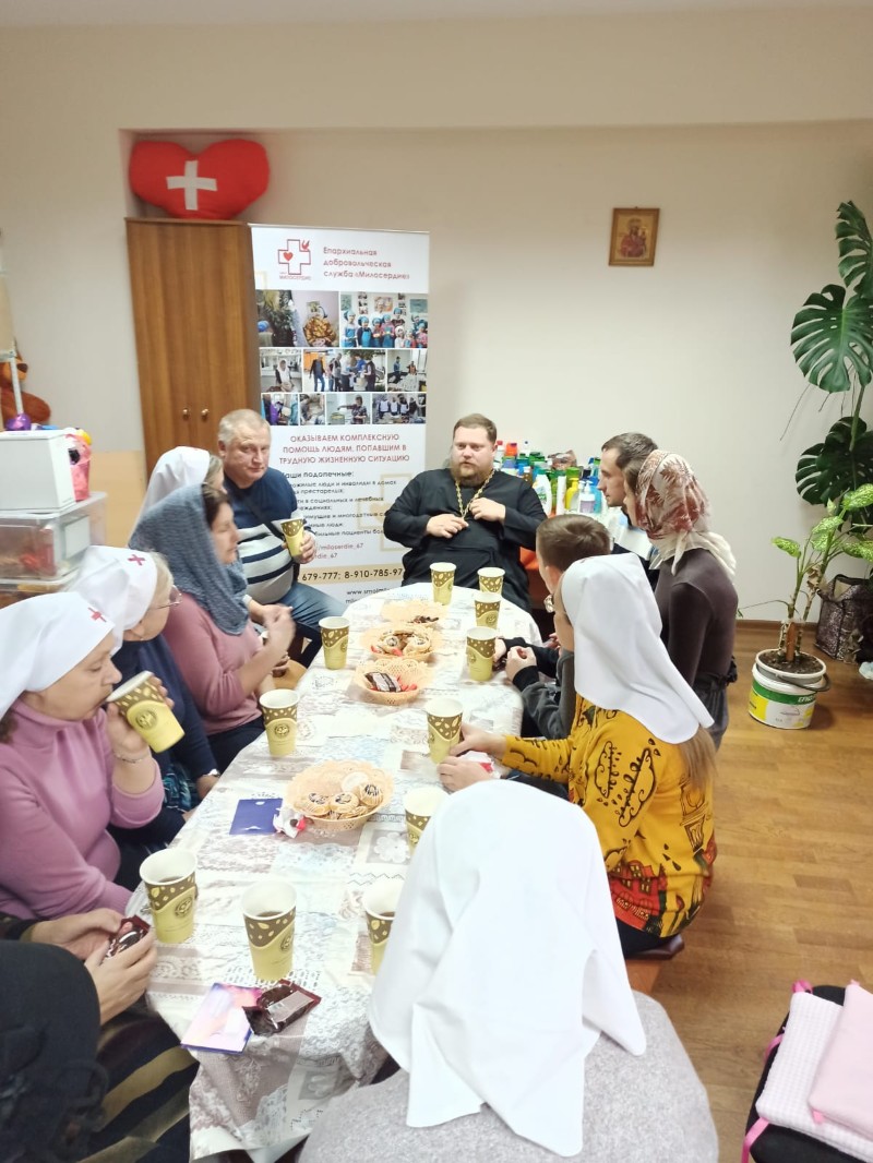 После завершения молебна добровольцы и сестры милосердия смогли задать отцу Дионисию интересующие их вопросы относительно Священного Писания и богослужений. Участники встречи обсудили текущие мероприятия: предстоящую фасовку продуктов для подопечных, привлечение новых добровольцев к делам службы.