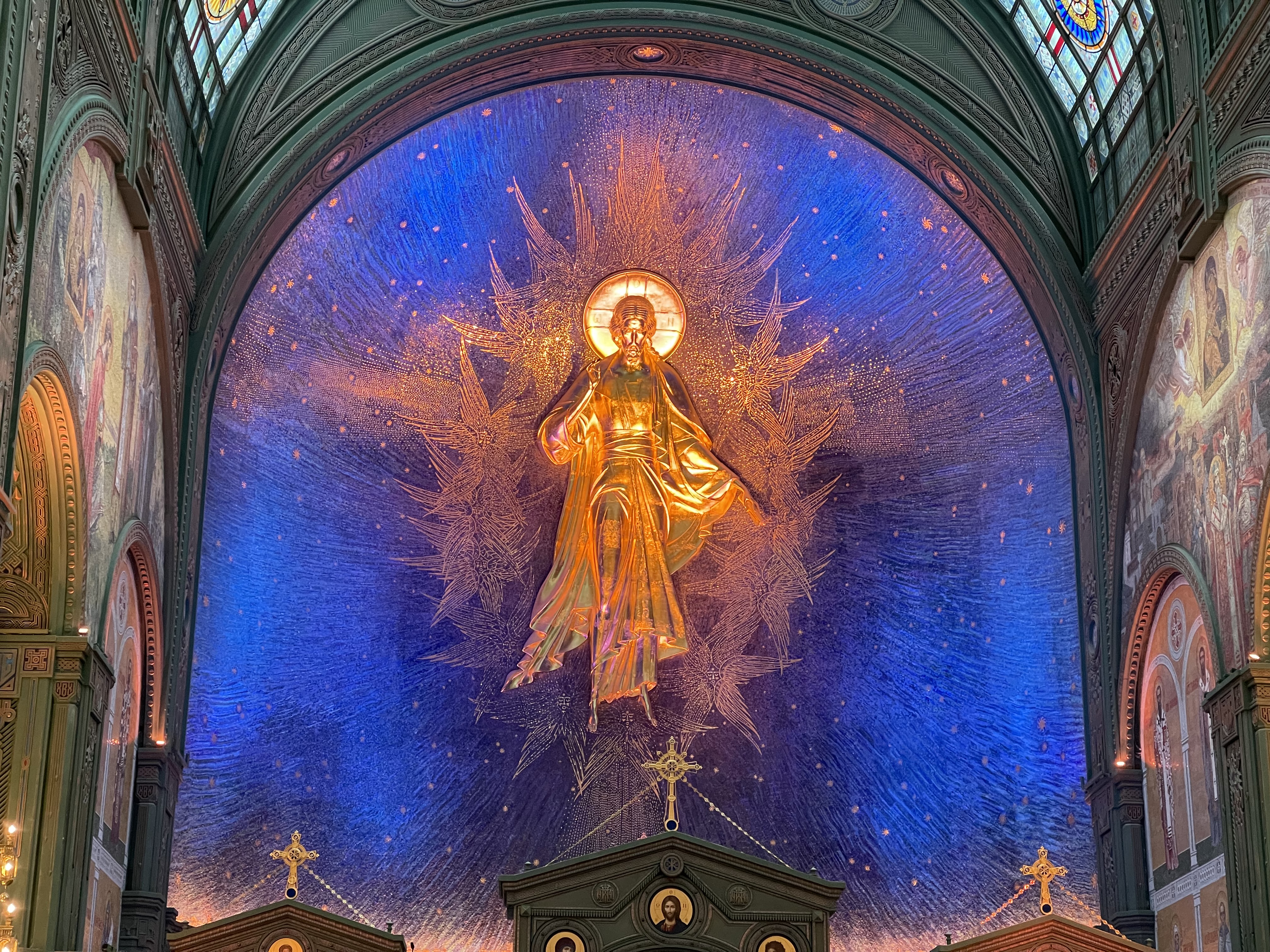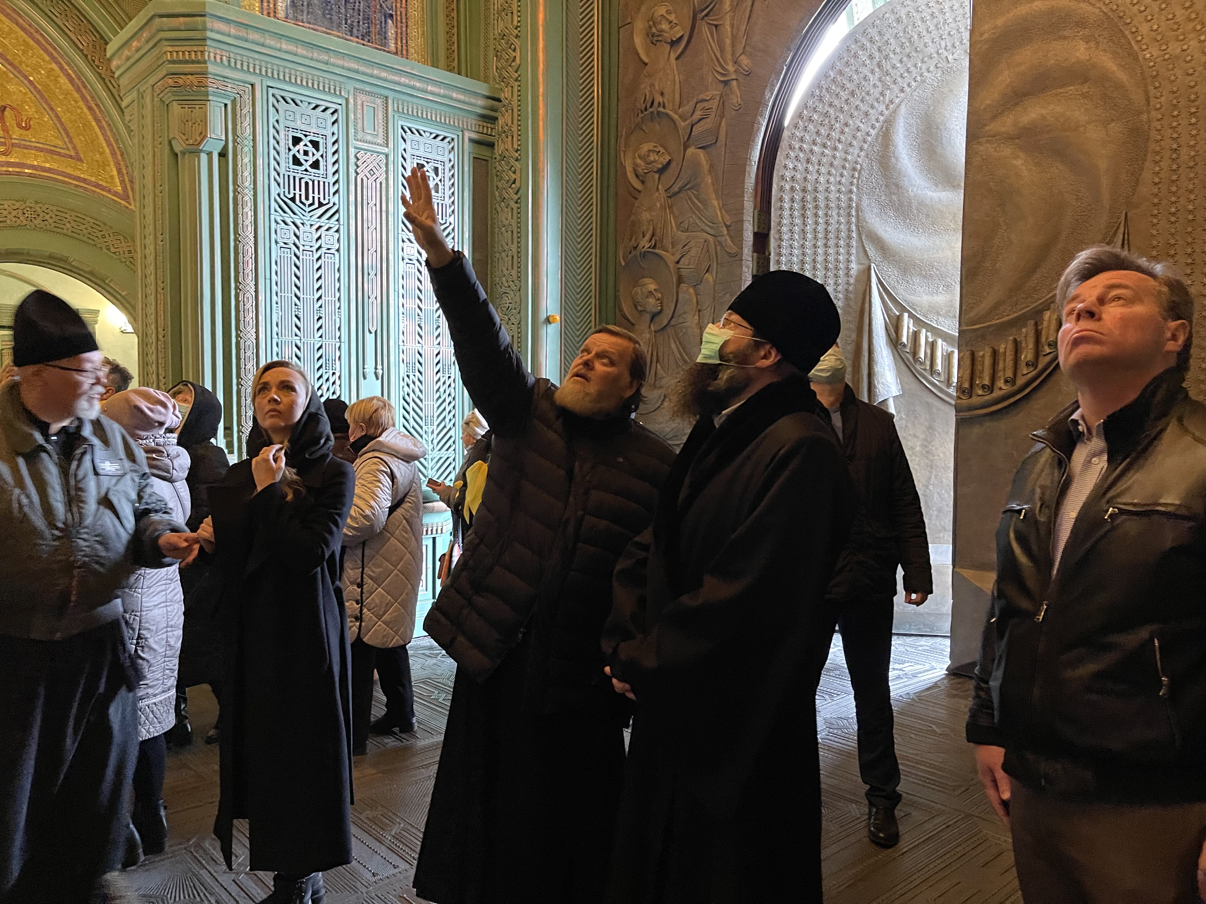 Его Высокопреосвященство ознакомился с главными святынями храма, иконами и фресками, отражающими подвиг русского народа в борьбе за свободу земного Отечества.