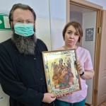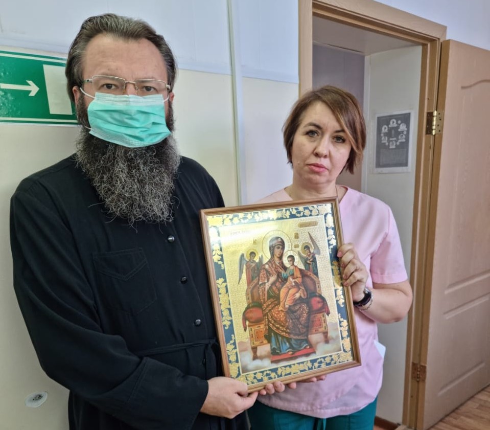 Митрополит Исидор поблагодарил за мужество и самоотверженный труд врачей и медицинский персонал больницы. Заведующей Инфекционного отделения № 1 Елене Николаевне Симакиной Владыка передал икону Божией Матери «Всецарица».