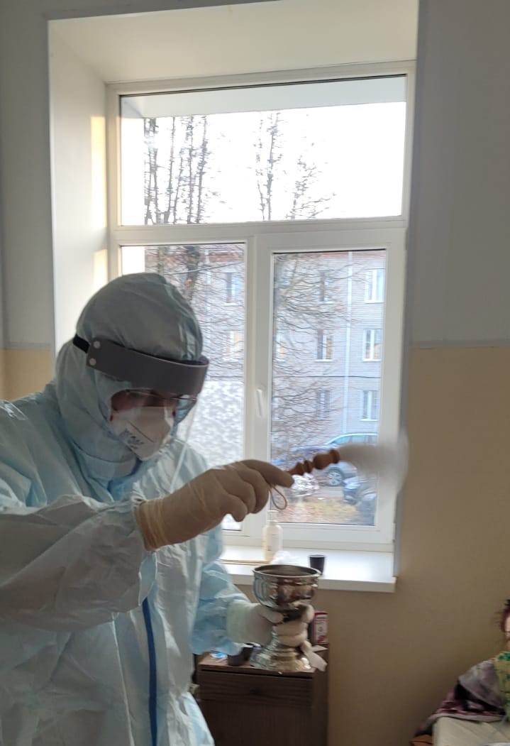 4 ноября 2021 года, в праздник Казанской иконы Божией Матери, митрополит Смоленский и Дорогобужский Исидор в сопровождении руководителя Отдела Смоленской епархии по социальному служению и церковной благотворительности иерея Дионисия Давыдова посетил пациентов с COVID-19, находящихся на лечении в ОГБУЗ «Клиническая больница № 1».