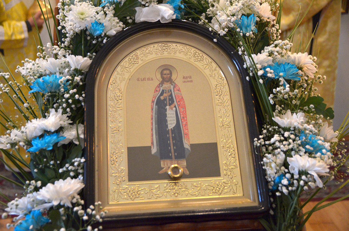 В завершении богослужения состоялся праздничный Крестный ход вокруг храма и славление святого благоверного князя Андрея Смоленского.