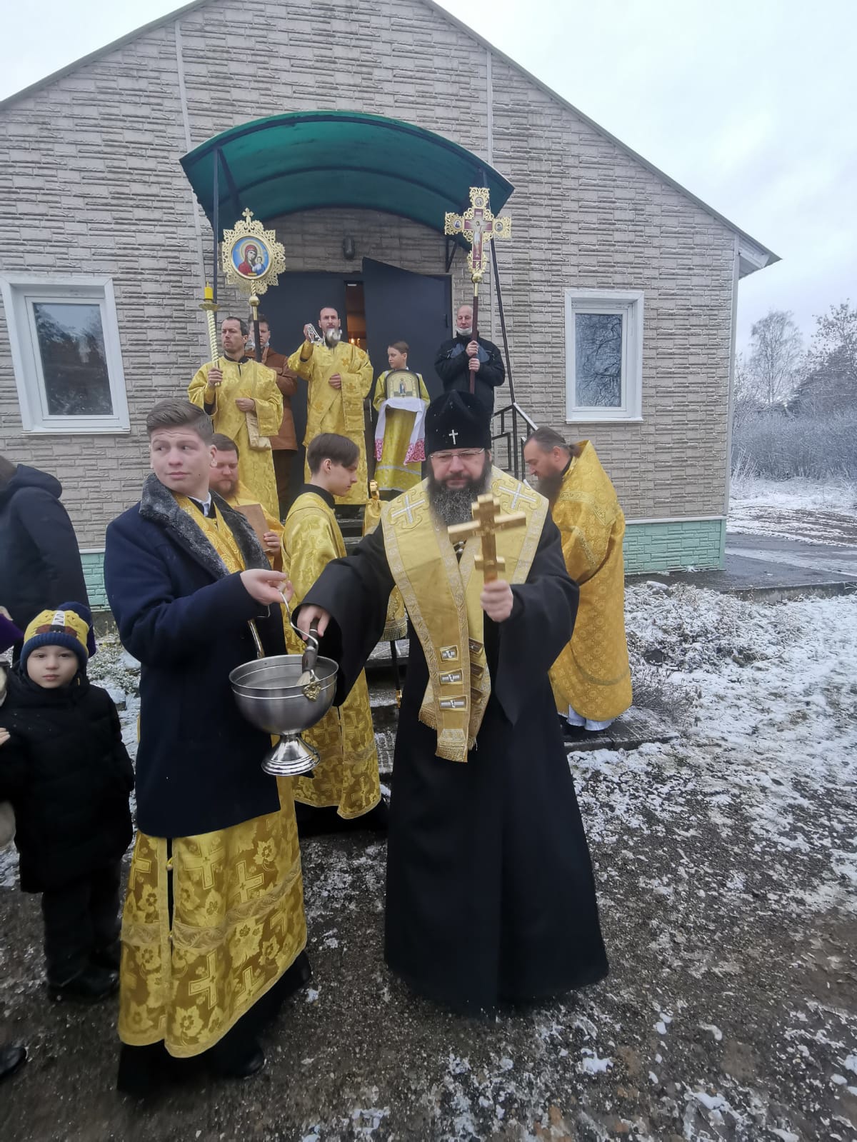 Я искренне всех поздравляю с праздником, особенно отца Николая и весь приход, Вами, отец Николай, возглавляемый. Радуюсь тому, что не без Вашего труда по известным нескольким причинам строится храм благоверного князя Андрея Смоленского. Эти несколько причин — это не только обстоятельства, в которые мы были ввержены болезнями нашими, но и малое количество тех благодетелей, которые могли бы нам быстро помочь в завершение строительства нашего храма. Надеемся, что благоверный князь Андрей направит нам тех, кто поможет нам справиться с завершением строительства этого храма, и будем надеяться, что милостию Божией в следующем году на престольном празднике мы сможем совершить богослужение в новом храме в честь святого благоверного князя Андрея.