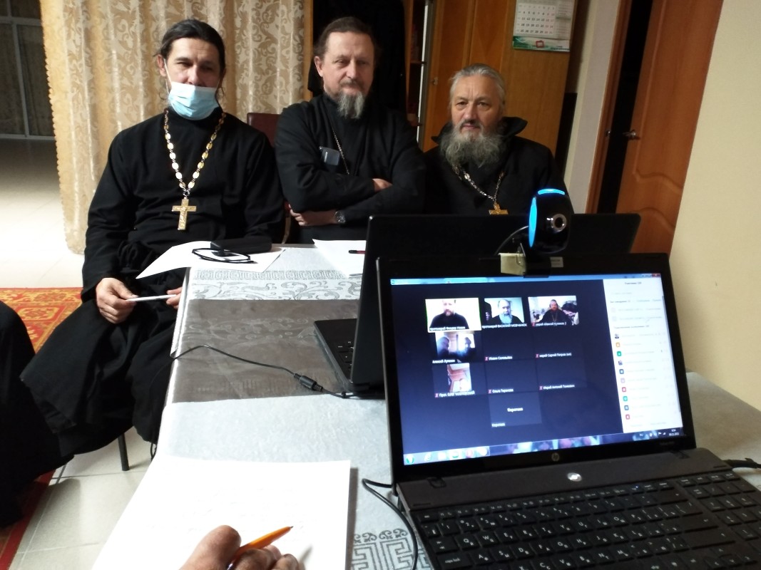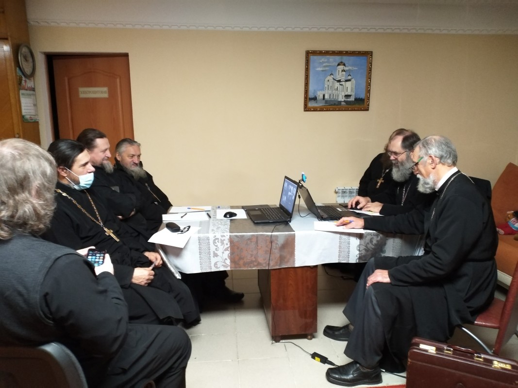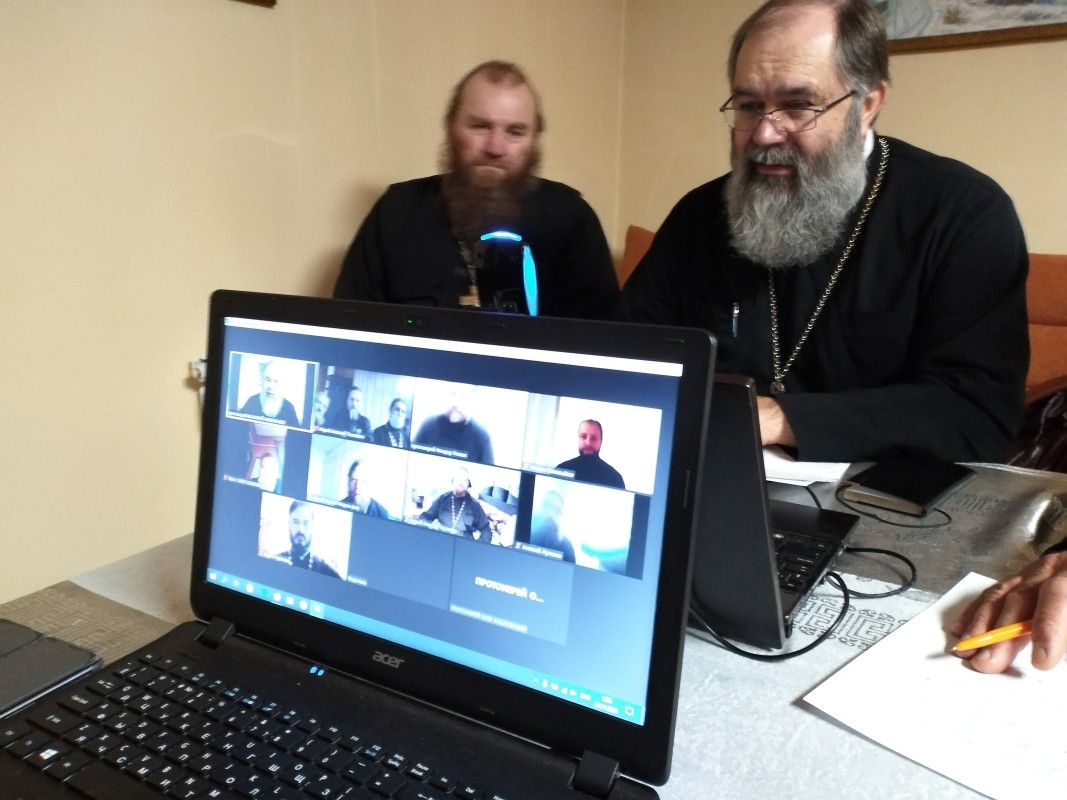 Обсуждение вопросов проходило дистанционно. Священнослужители, не имеющие возможность выйти в онлайн-конференцию, прибыли в Свято-Георгиевский собор города Ярцево.