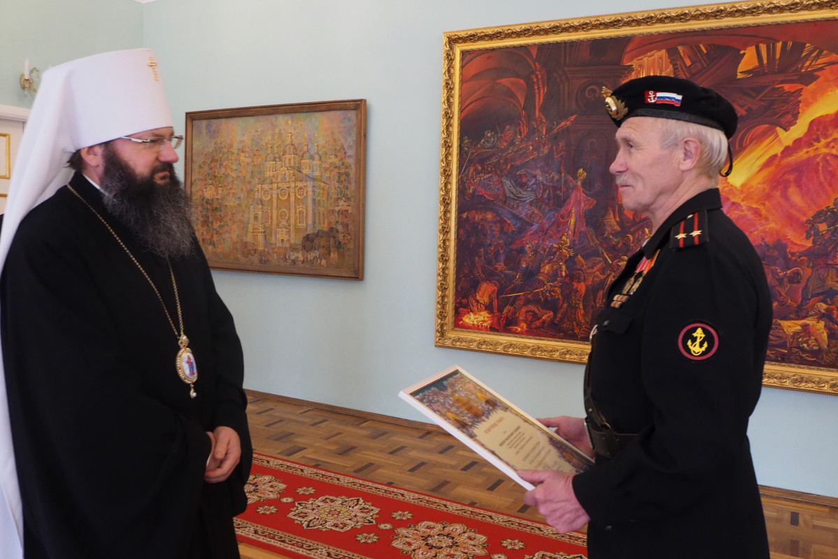 Митрополит Смоленский и Дорогобужский Исидор вручил Виктору Михайловичу, подполковнику гвардии в отставке Морской пехоты Тихоокеанского флота Противовоздушной обороны Архиерейскую грамоту и призвал на сотрудника Смоленской епархии Божие благословение, пожелав помощи Божией в добрых трудах.