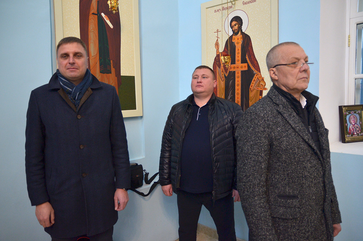 За богослужением молились руководитель архитектурно-строительного Отдела Смоленской епархии, древлехранитель Александр Александрович Дубровский, жители д. Михновка.