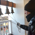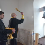 В завершение Чина освящения студент 3 курса Смоленской православной духовной семинарии, преподаватель курса звонарей Константин Гарин совершил первый колокольный звон на новой звоннице.