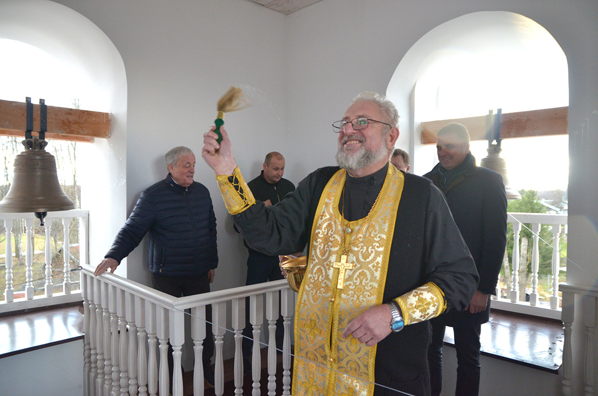 Настоятель Прихода, иерей Александр Сусенков совершил окропление колоколов святой водой.