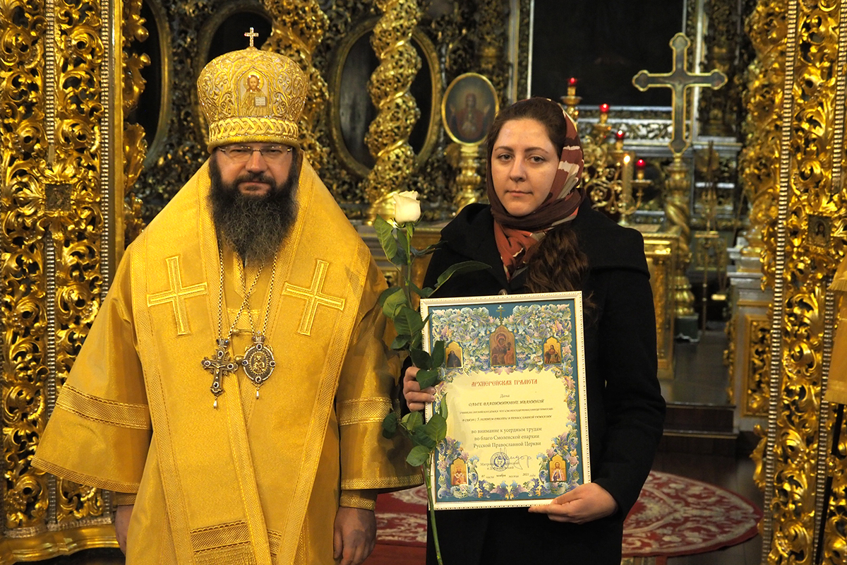 По окончании Литургии Высокопреосвященнейший митрополит Исидор вручил награды Смоленской епархии потрудившимся во благо Русской Православной Церкви.