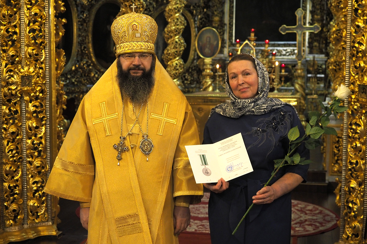 Права ношения медали святого преподобного Герасима Болдинского удостоена Заломаева Елена Петровна, певчая архиерейского хора Смоленского Свято-Успенского кафедрального собора в связи с 60-летием со дня рождения.