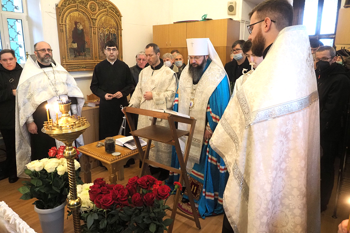 Чин отпевания усопшего возглавил Глава Смоленской митрополии, ректор Смоленской Православной Духовной семинарии митрополит Смоленский и Дорогобужский Исидор. Высокопреосвященнейшему владыке ректору сослужили проректор по учебной работе в Смоленской Православной Духовной семинарии иерей Олег Ребизов, помощник ректора по воспитательной работе в Смоленской Православной Духовной семинарии иерей Димитрий Гамиловский, клирики Смоленской епархии.