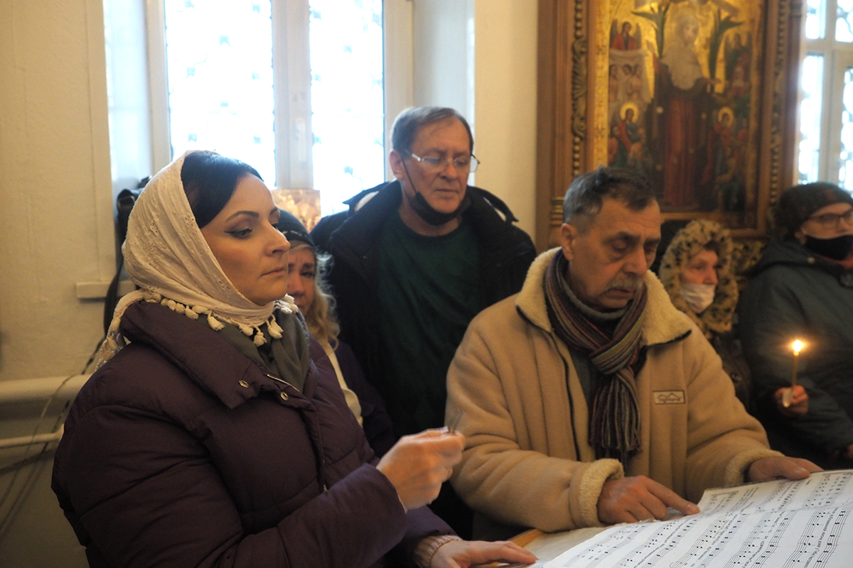 Песнопения исполнил Архиерейский хор Смоленской епархии, под управлением регента Елены Фроловой.