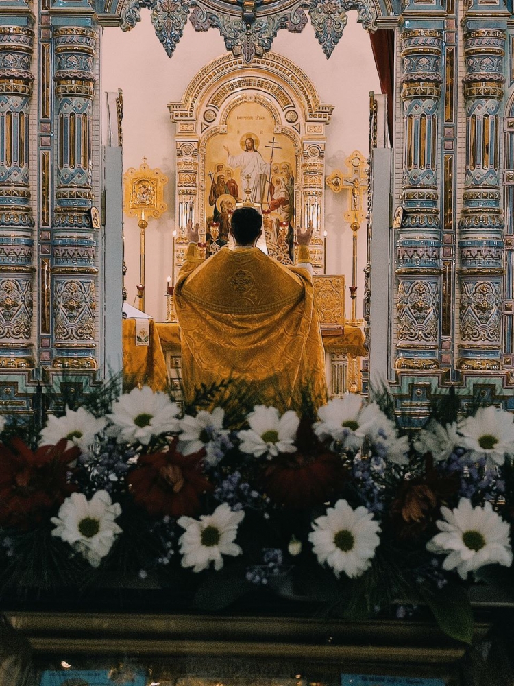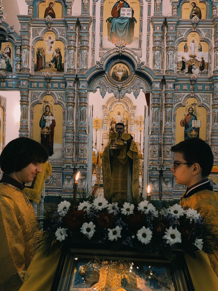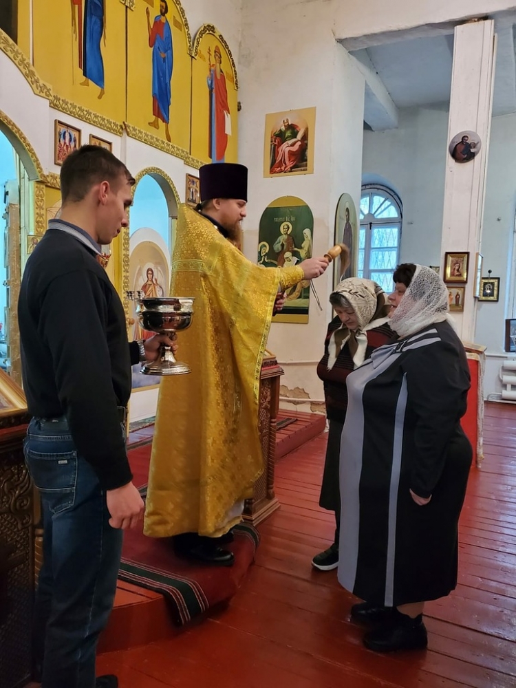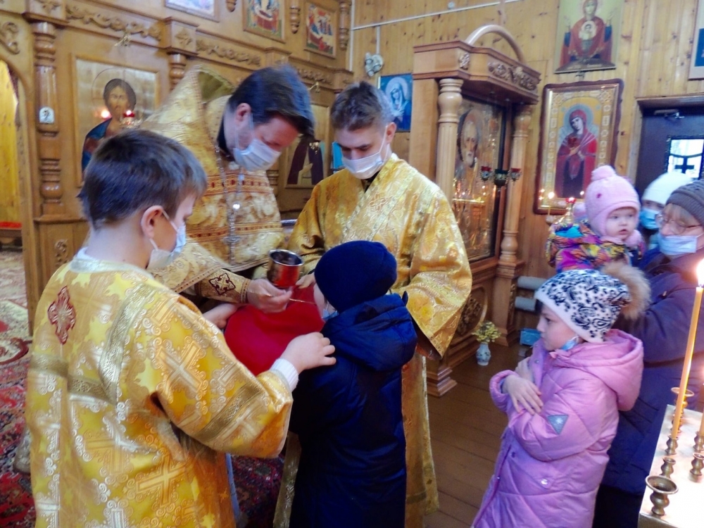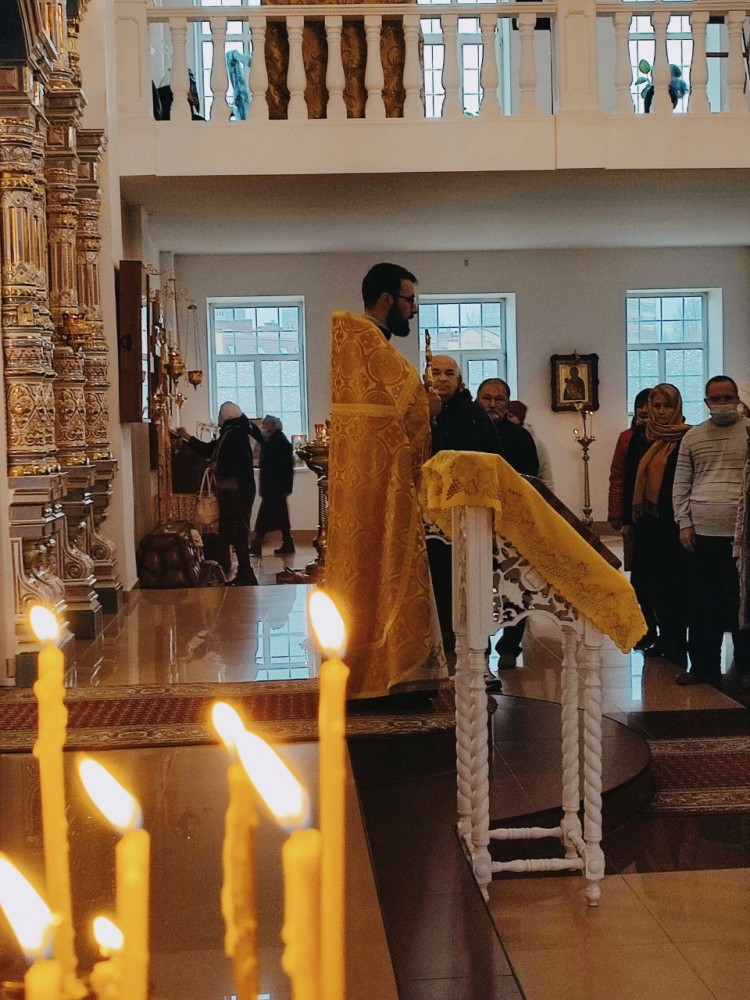 Священники приветствовали прихожан, поздравляя с воскресным днем и началом Рождественского поста.