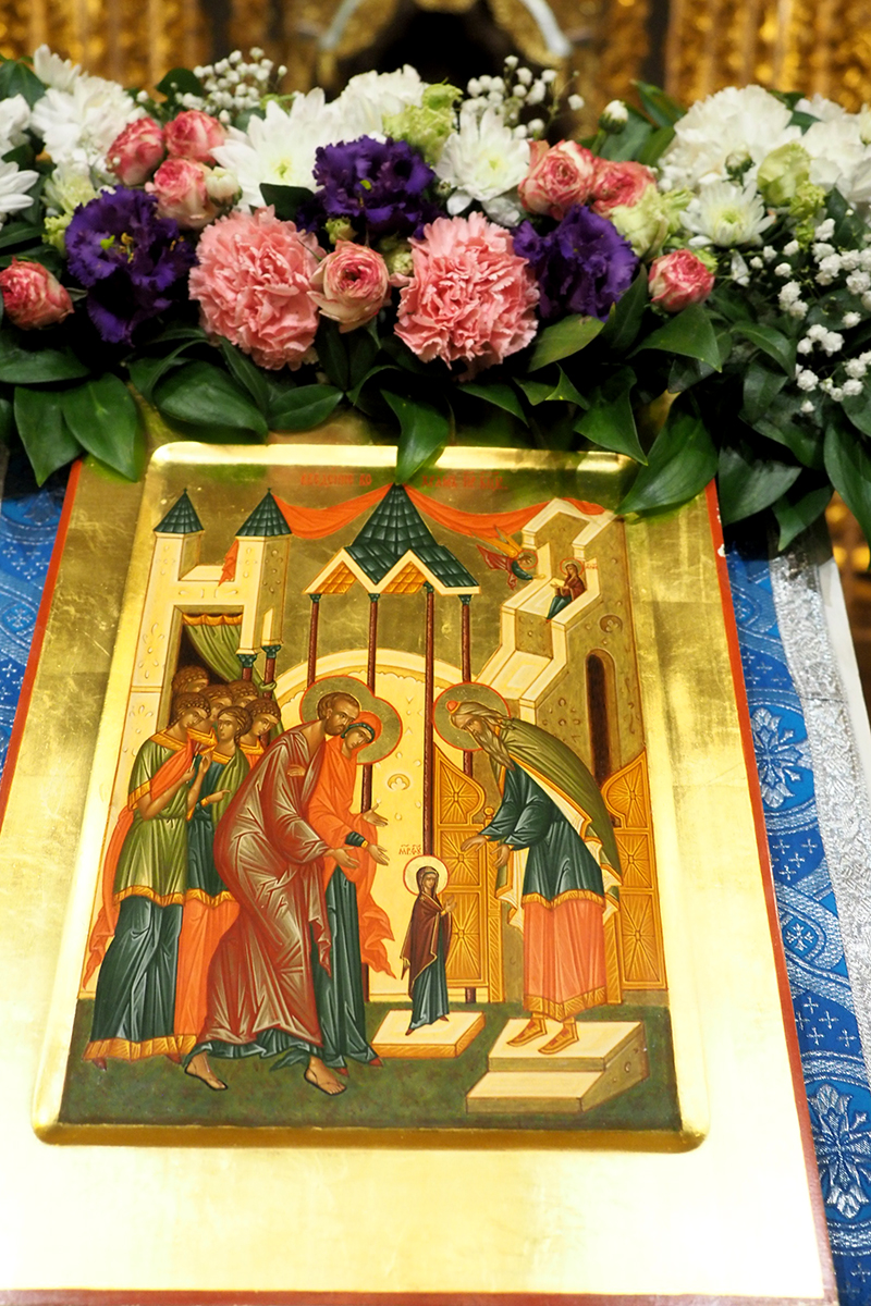 По отпусте Литургии на центре храма у иконы Введения во храм Пресвятой Богородицы был совершен молебен празднику.