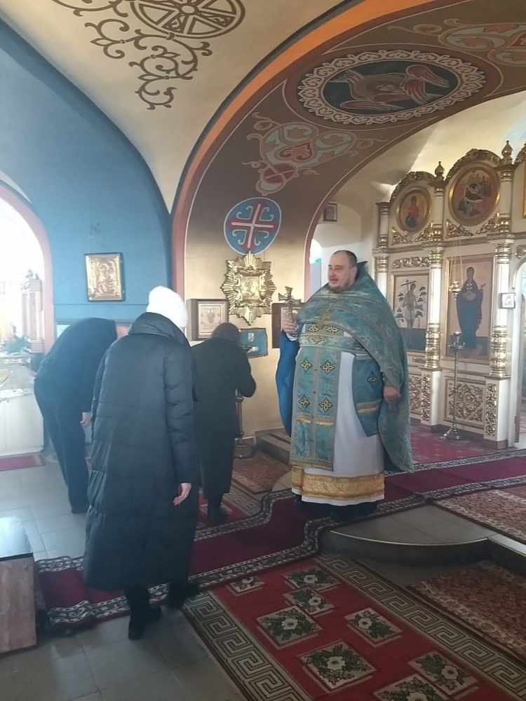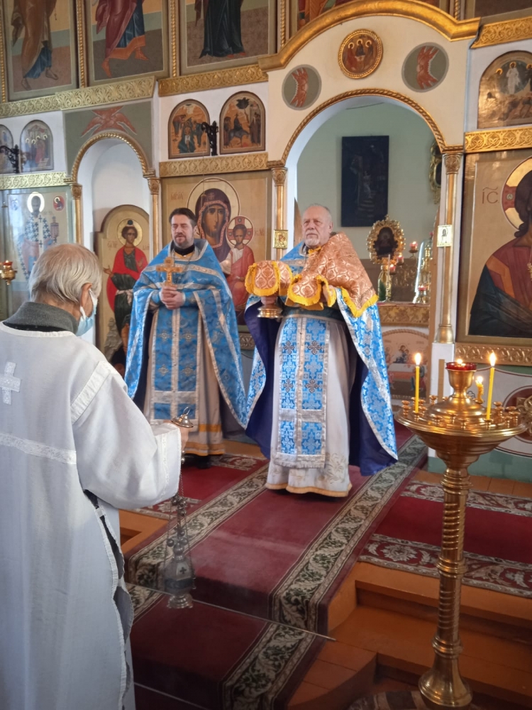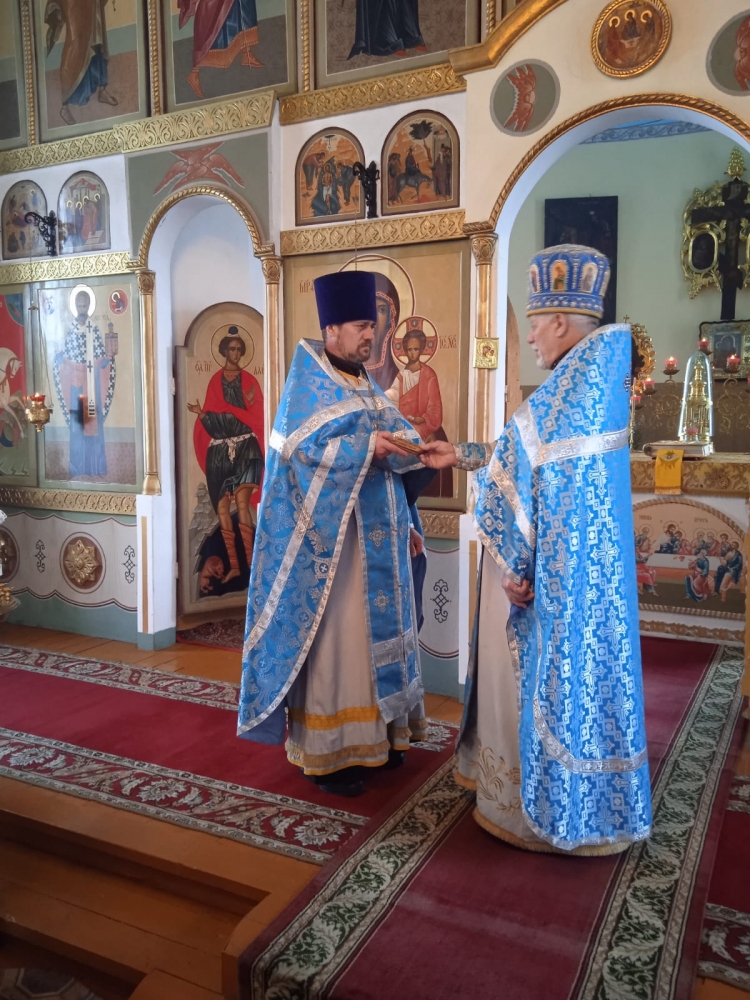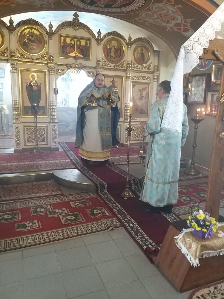 По окончании праздничной литургии протоиерей Валентин Бабич поздравил всех с праздником и пожелал заступничества Пресвятой Богородицы.