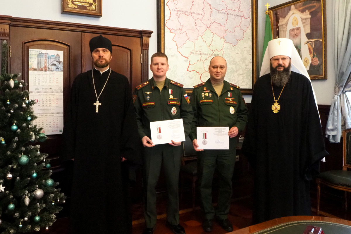 6 декабря 2021 года, в день памяти святого благоверного великого князя Александра Невского, в рабочем кабинете правящего архиерея в Управлении Смоленской епархии состоялось награждение военного коменданта военной комендатуры (гарнизона, 1 разряда) (г.Смоленск) подполковника Ивана Владимировича Забазнова и заместителя военного коменданта военной комендатуры майора Романа Николаевича Новикова.