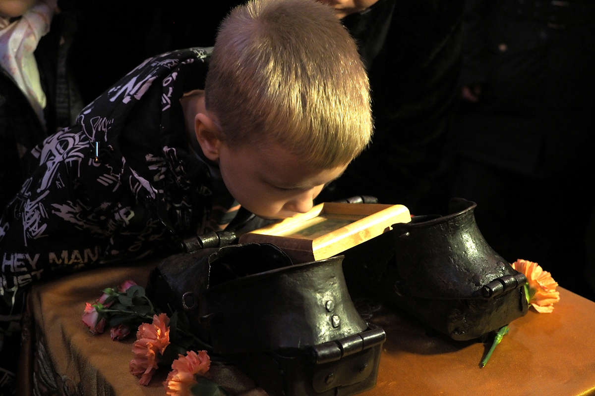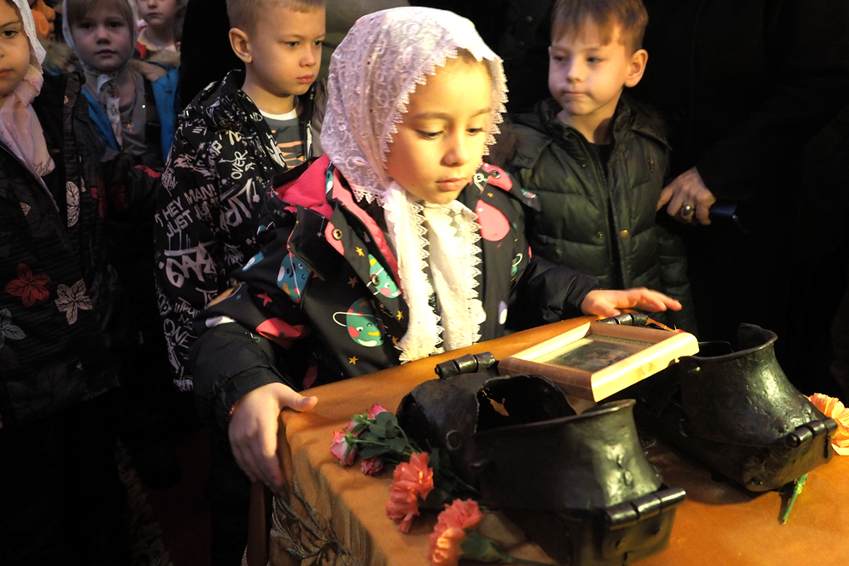 Каждый, кто подходил ко кресту, получил в благословение иконку святого мученика Меркурия.