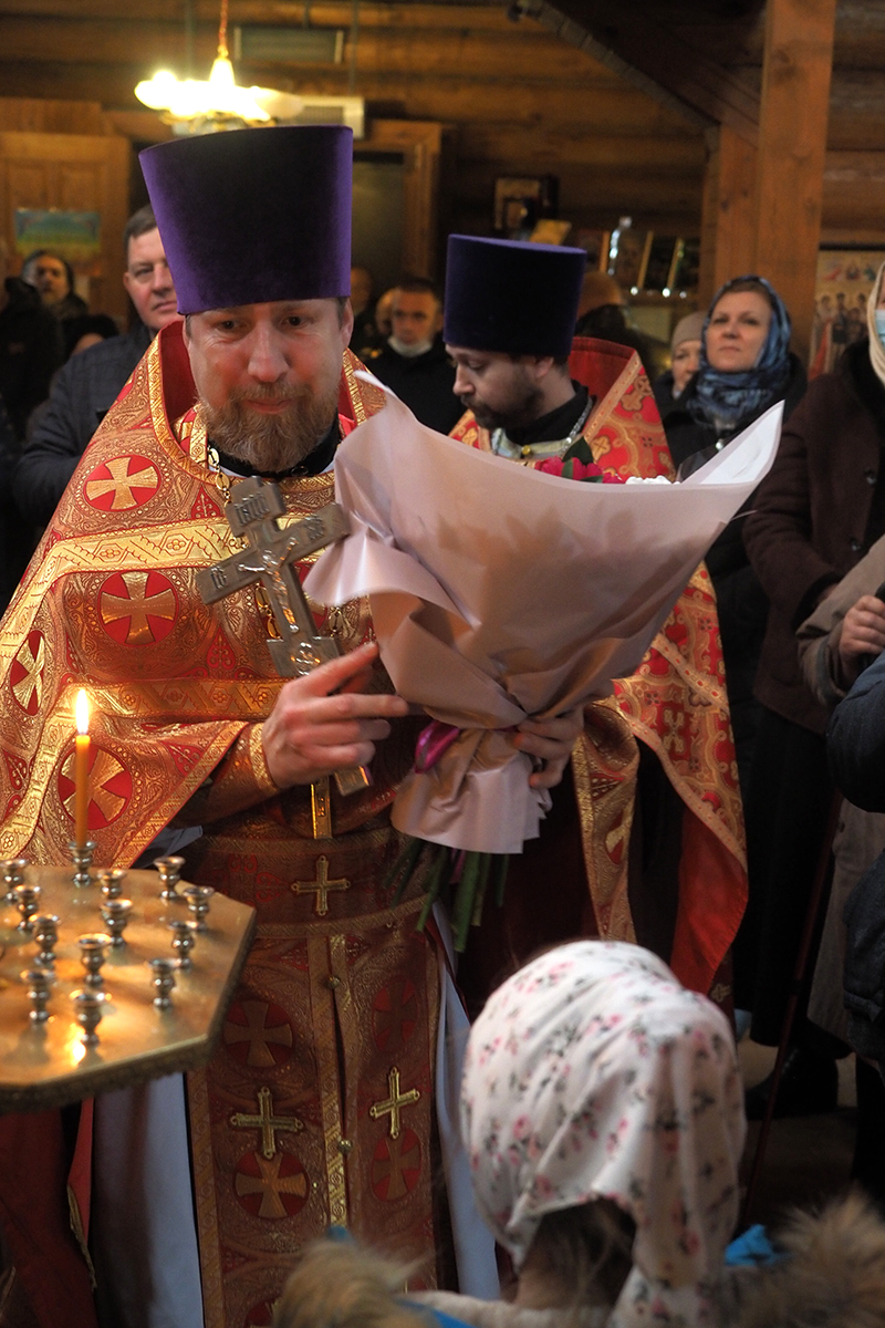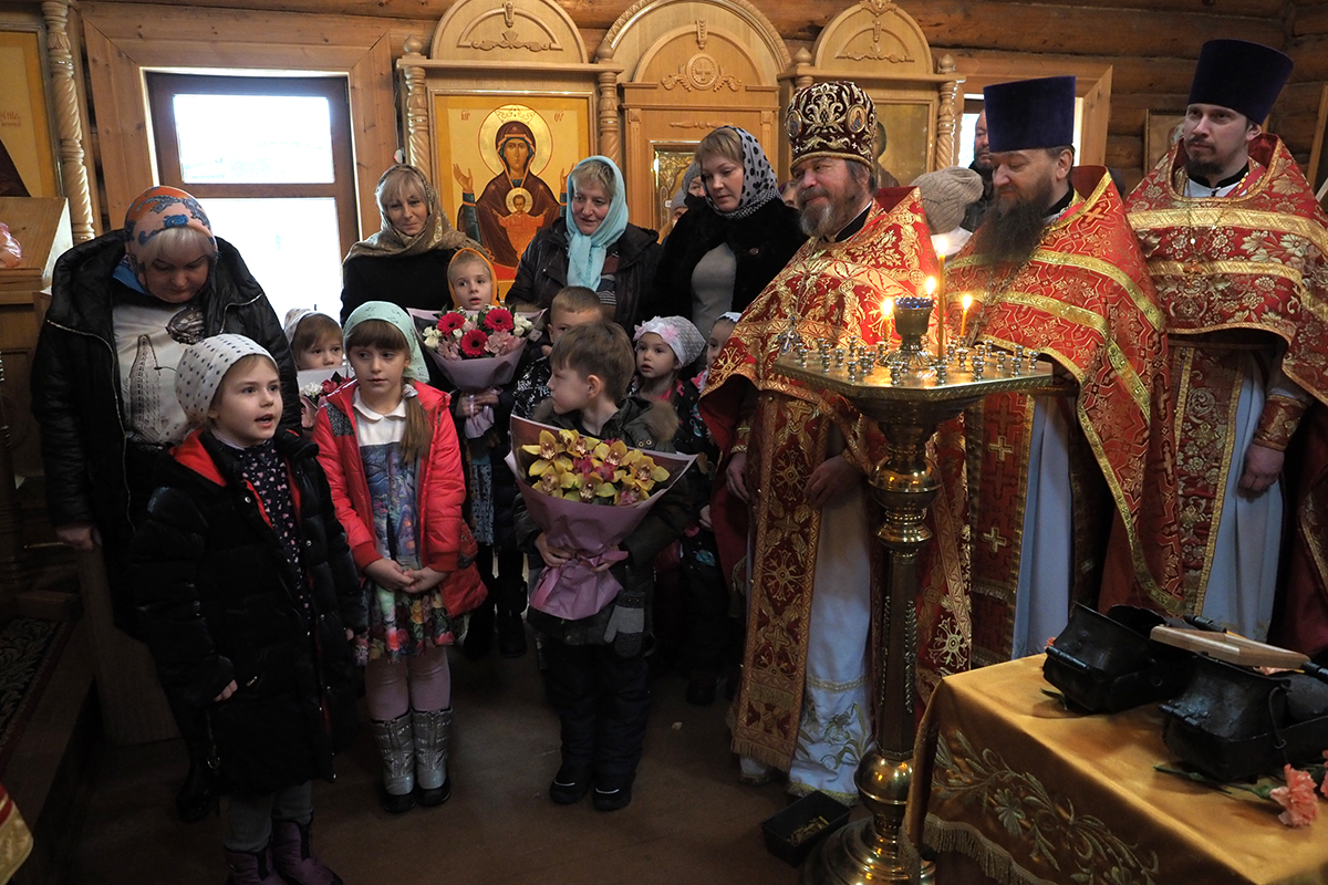 Настоятель храма поблагодарил Владыку за молитву и поддержку прихода, сотрудники Православного детского сада подарили цветы архипастырю, настоятелю и священнику храма.