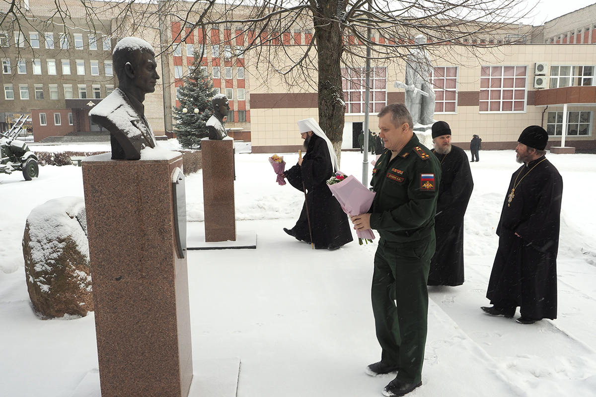 На территории Военной академии к памятным знакам в честь Героев России были возложены цветы.