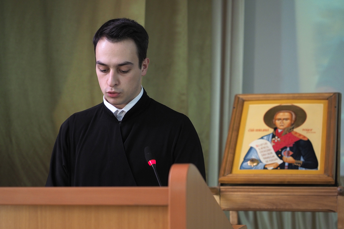 По окончании Божественной литургии, совершенной в храме святого мученика Меркурия Смоленского, действующего при Военной академии, духовенство, офицеры и курсанты с иконами святого мученика Меркурия и святого праведного воина Феодора Ушакова крестным ходом прошли до клуба академии, где в актовом зале была проведена конференция.